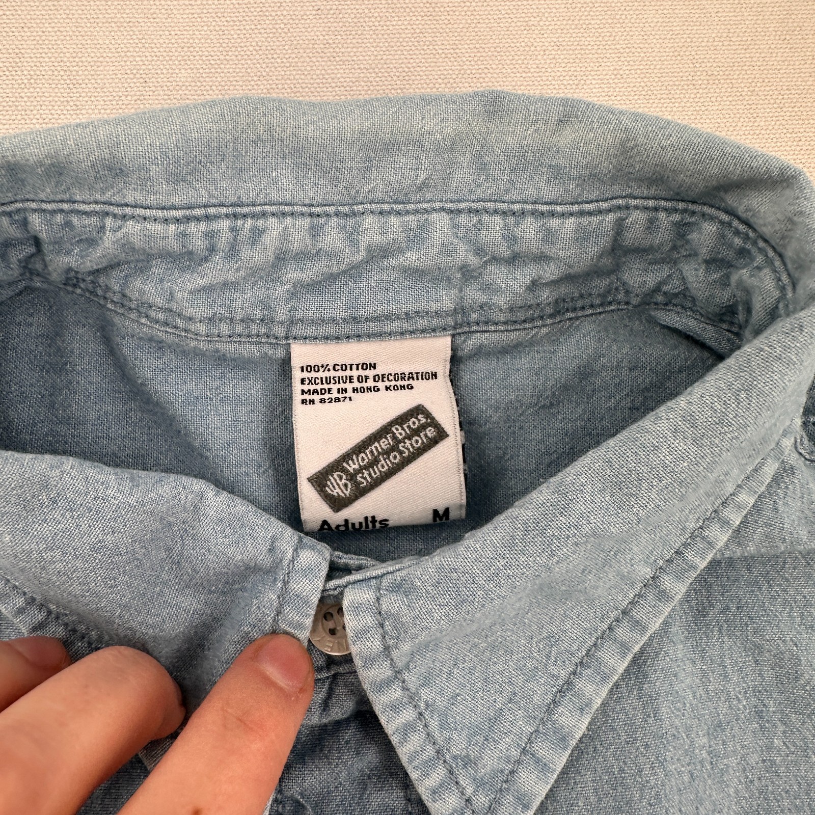 Vintage 90s Warner Bros Looney Tunes Embroidered Denim Shirt Men s M
