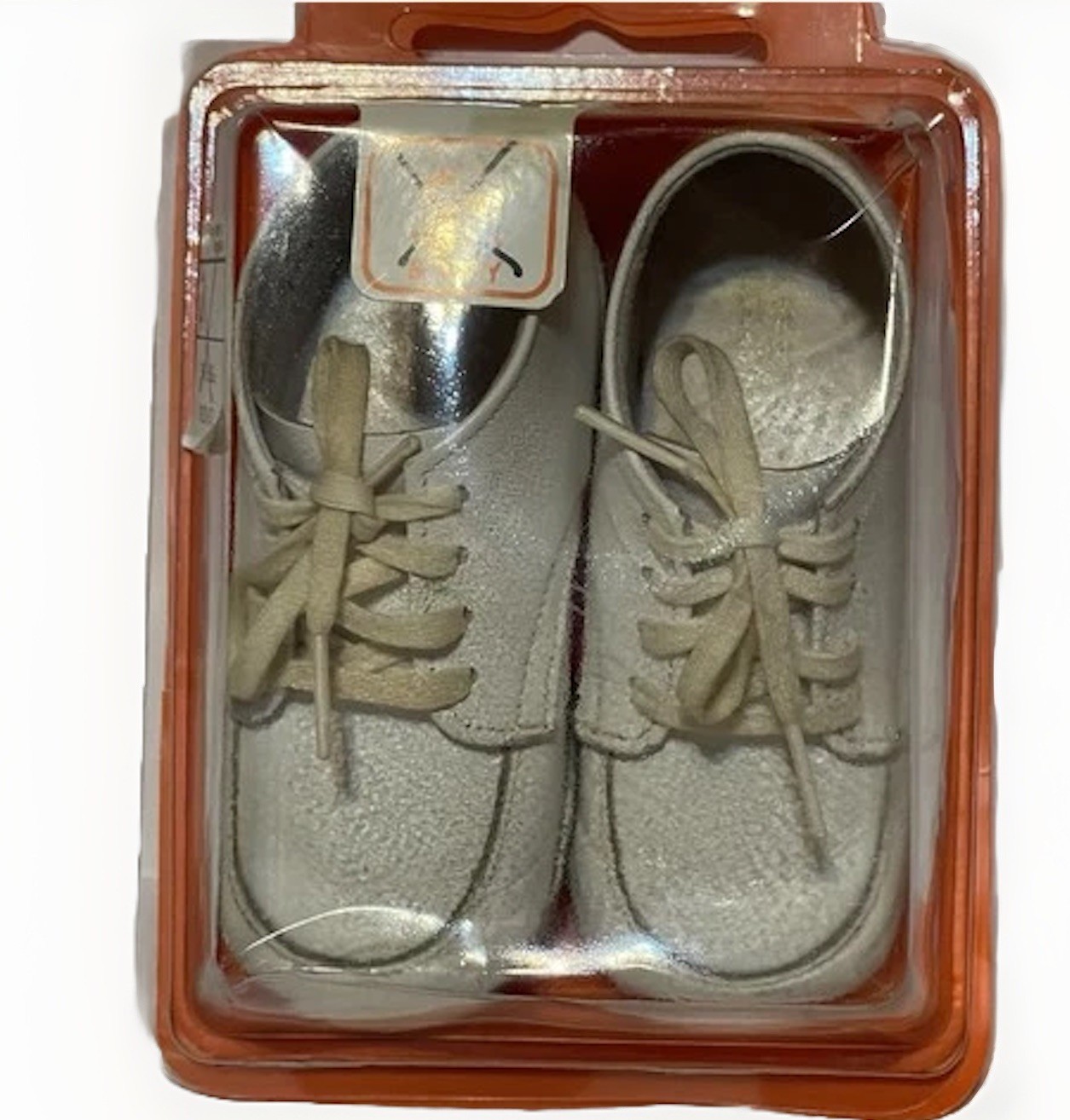 Vintage Stride Rite Size 5.5 E Hard Bottom Baby Shoes White Leather Lace Up