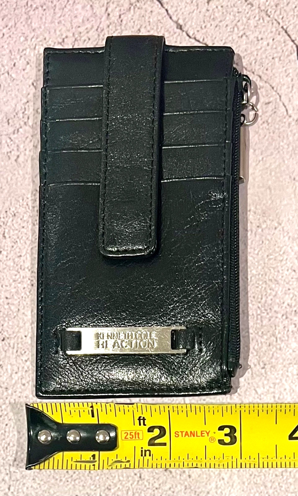 Kenneth Cole Reaction Black Leather License ID Credit Card Snap Zipped Wallet