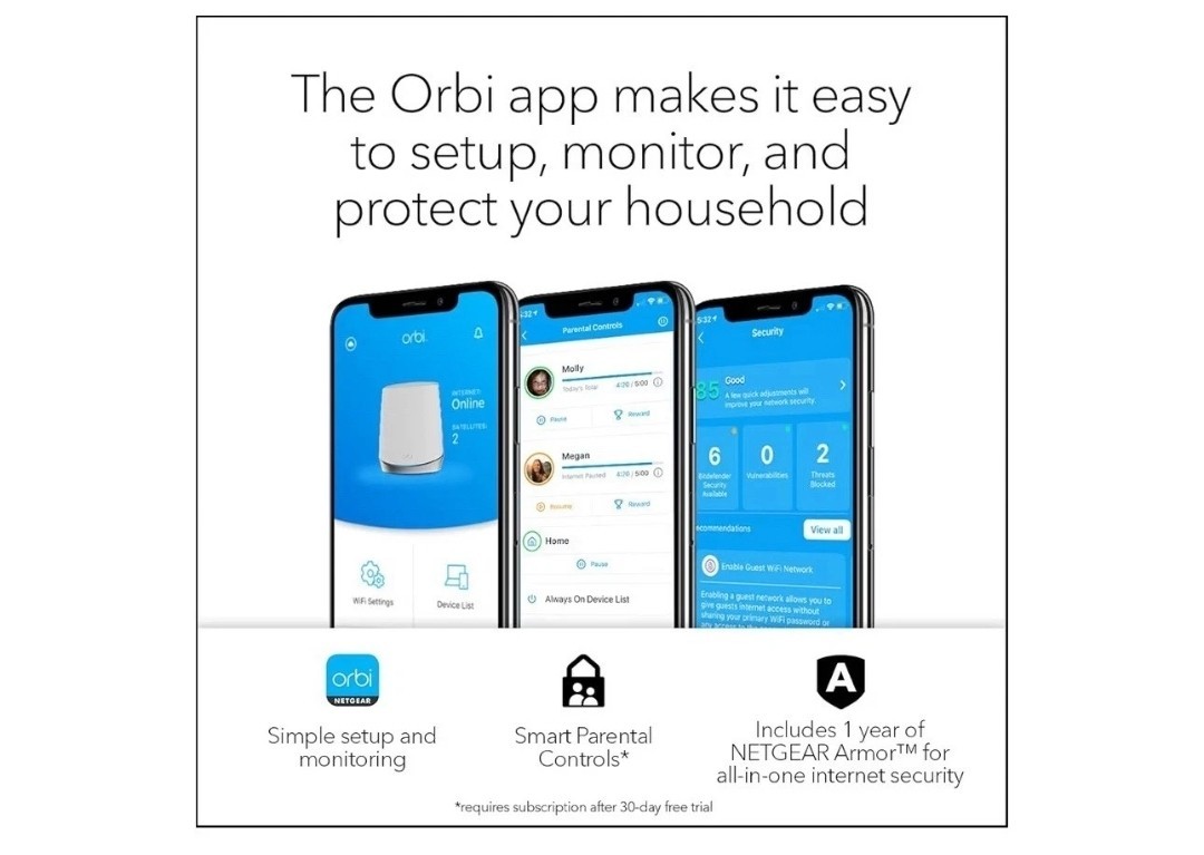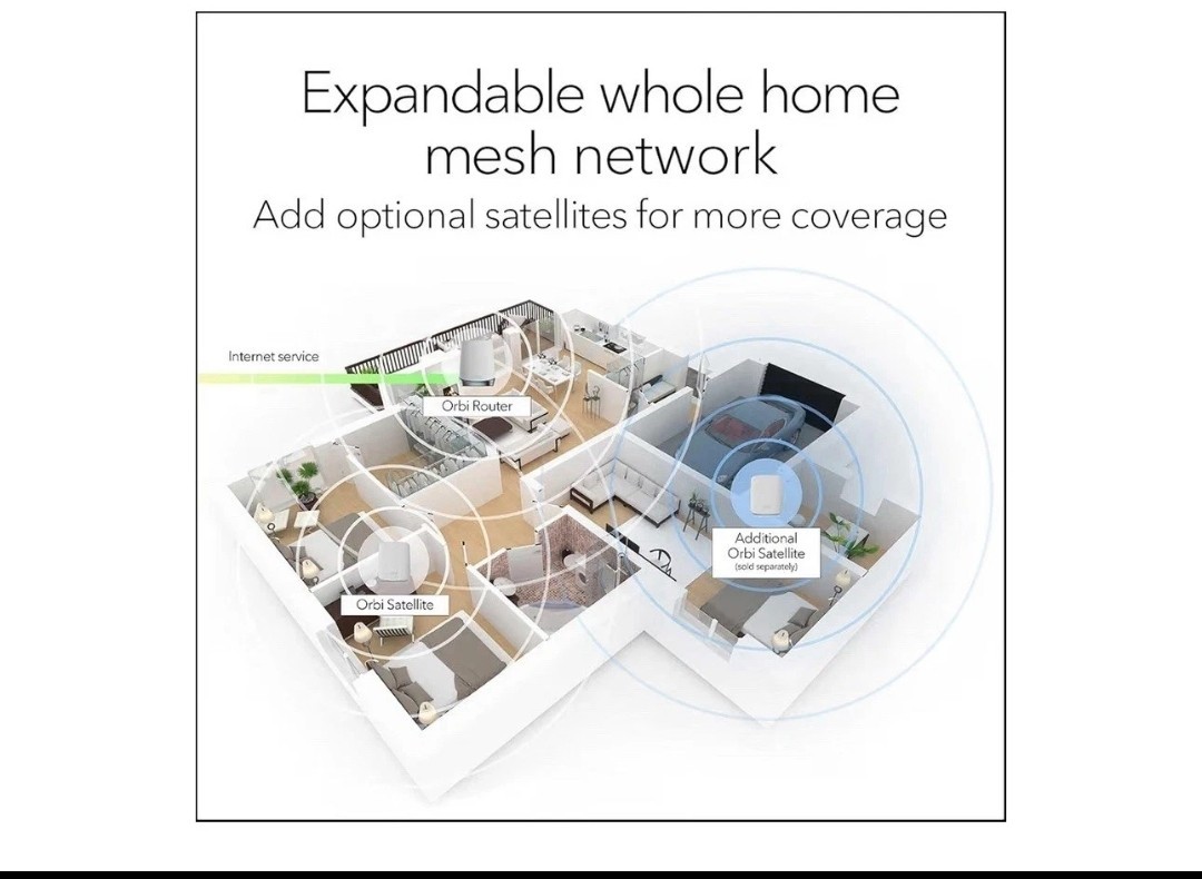 Netgear Orbi Powerful Smart Home WiFi 6 System Tri-band Mesh 4 Rooms AX3000
