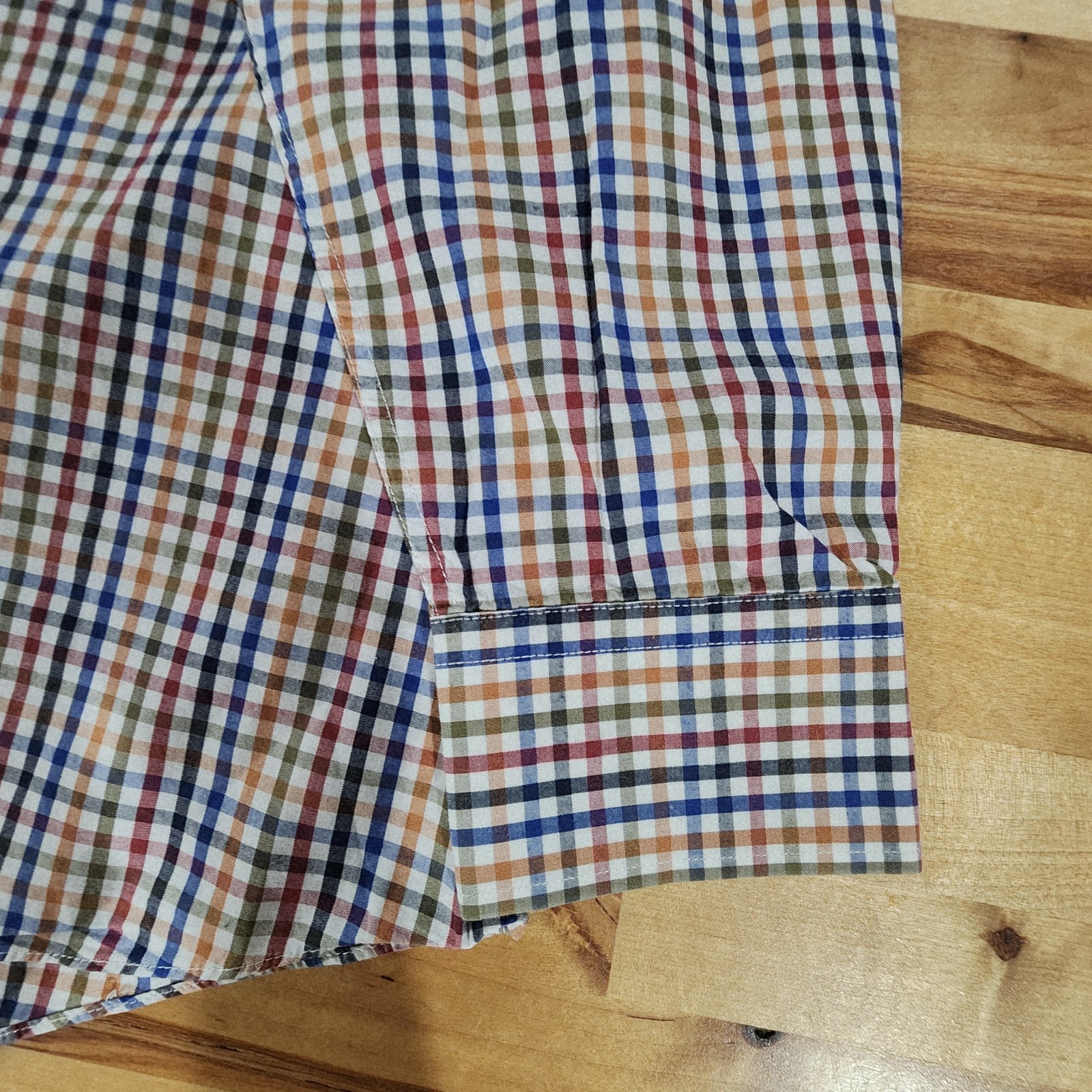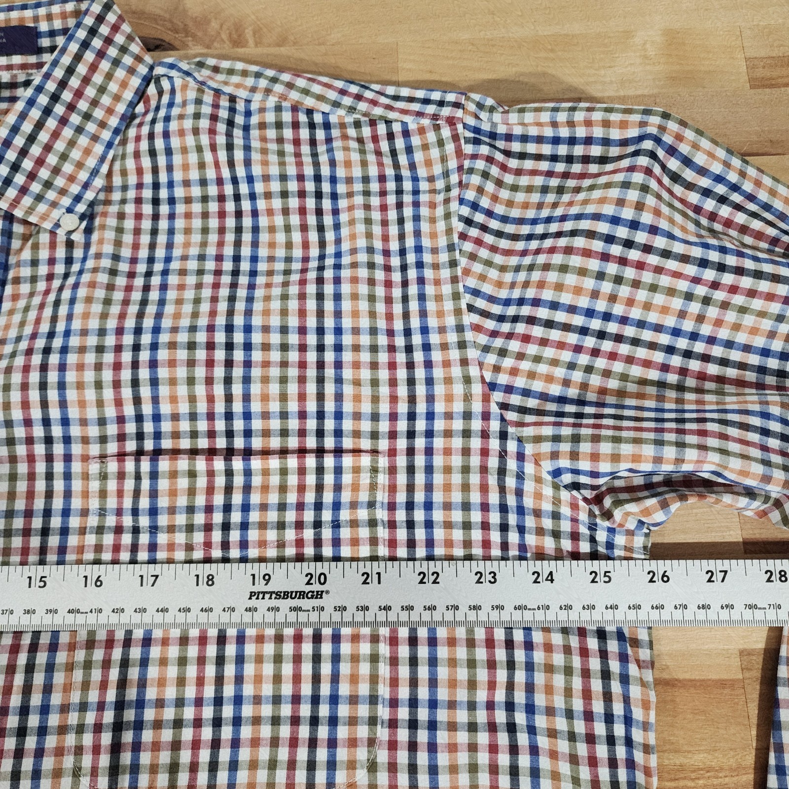 Men s XL Multicolor Check Button Down Shirt Alan Flusser 100 Cotton Long Sleeve