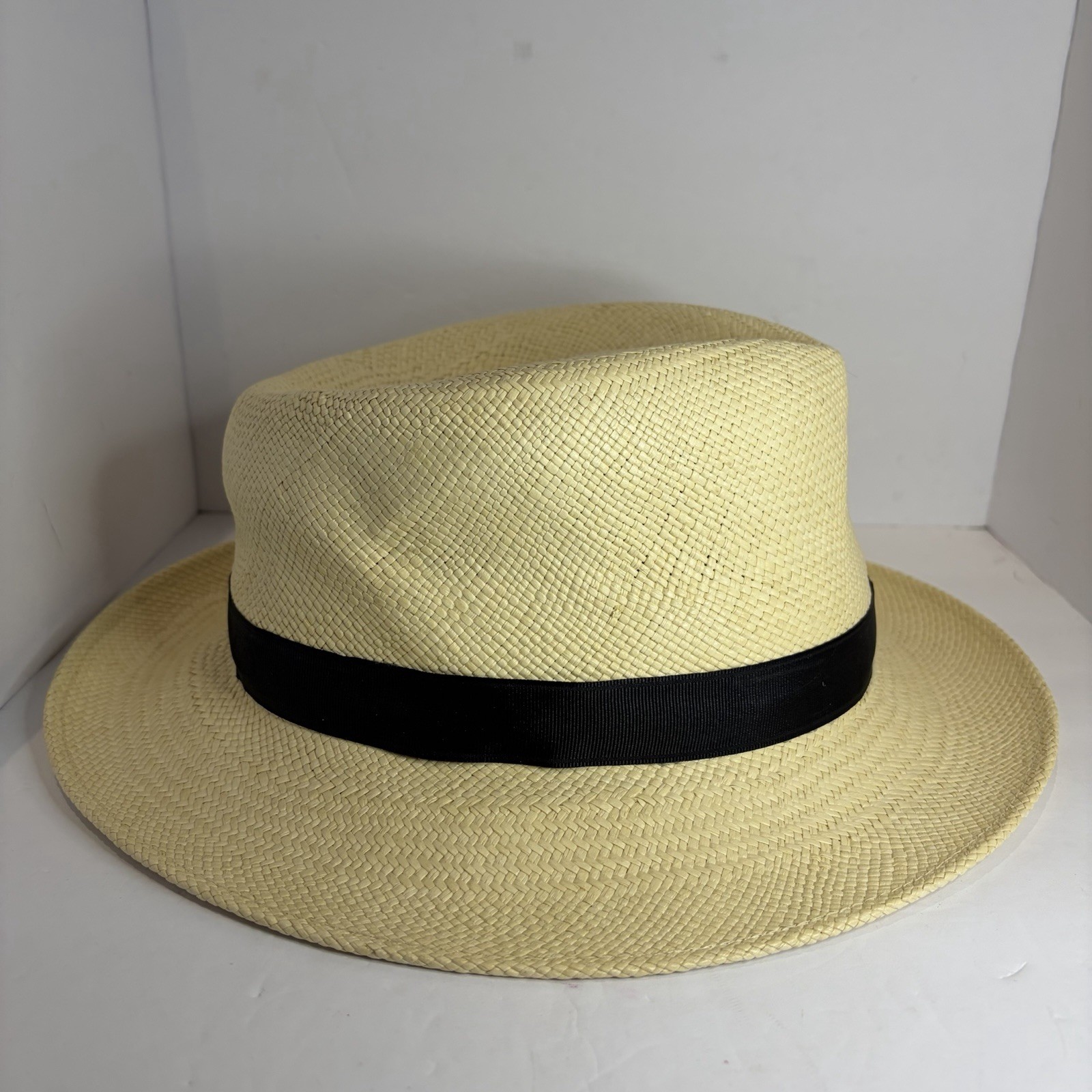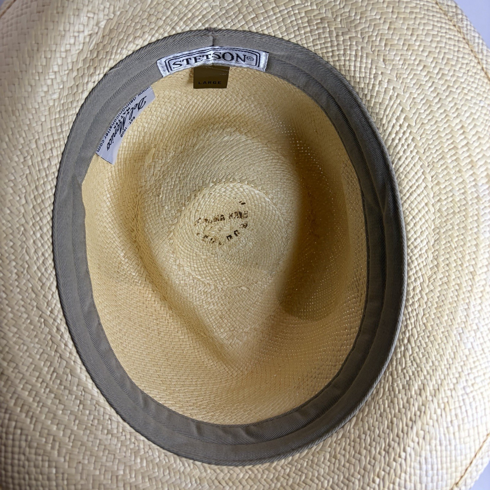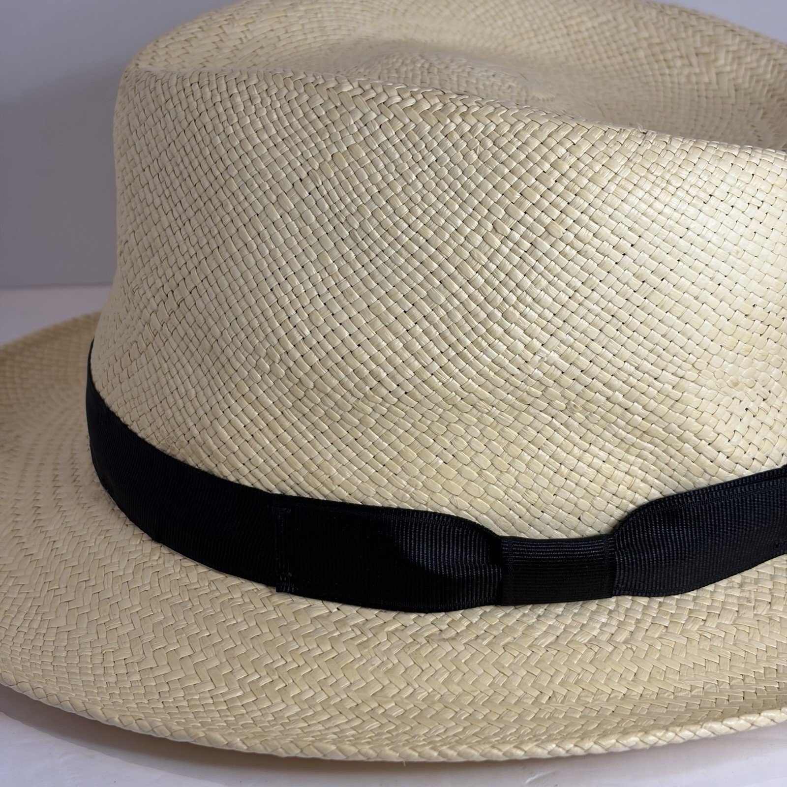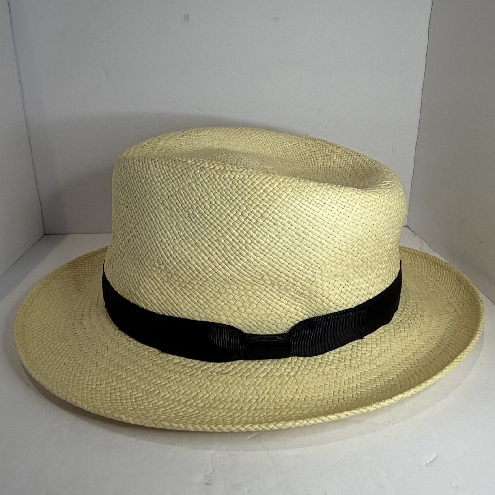 Stetson Straw Panama Hat Fedora Del Monico Hatter Black Band Large 6 1/2