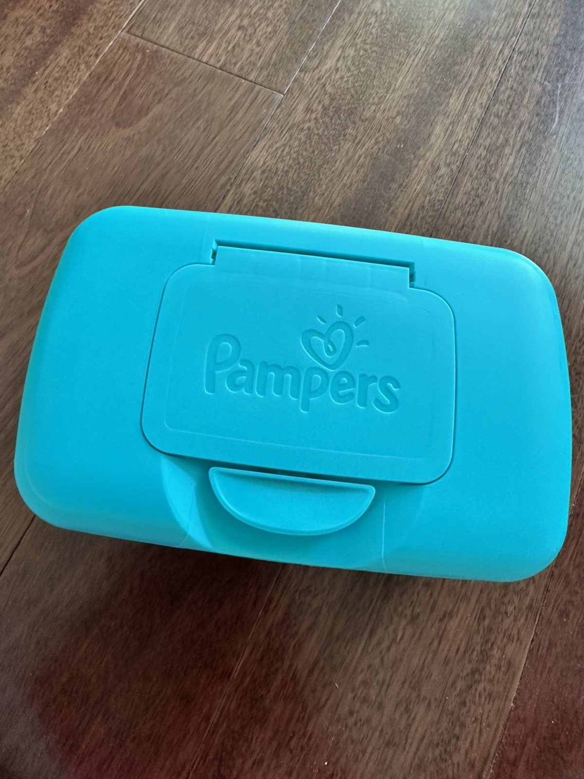 Pampers Baby Wipes Dispenser EMPTY Pop Up Plastic Container Blueish Green Clean