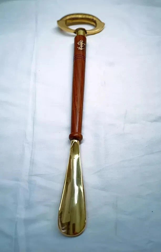 Shoe Horn Vintage Handmade Wooden Shoe Horn With Solid Brass Designer Handle