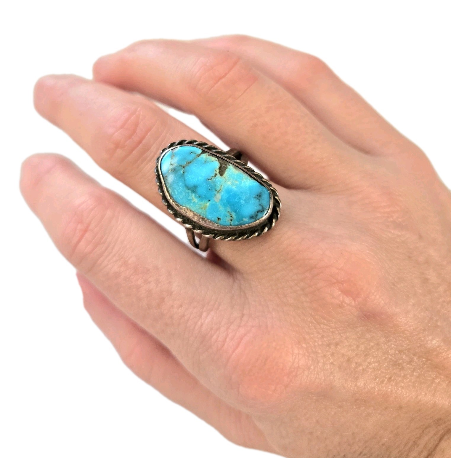 как выглядит Vintage 925 Sterling Silver Turquoise Ring - Sz 9.25 - 5.8 Grams фото