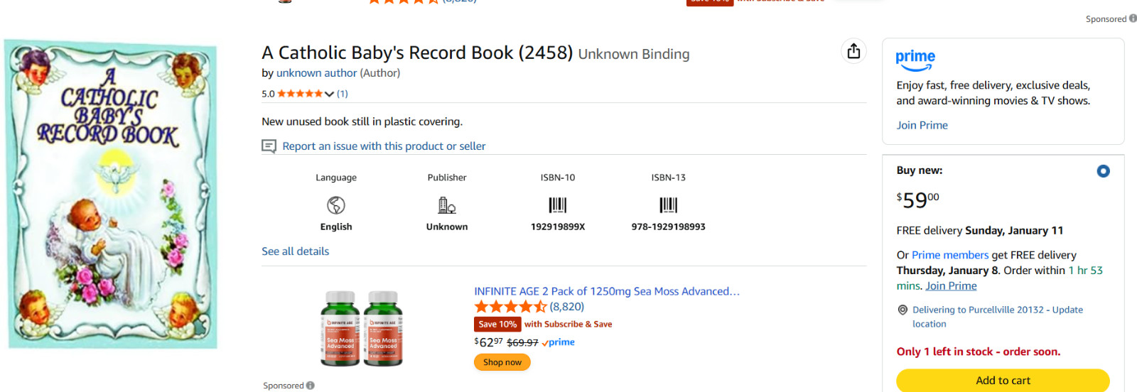как выглядит A Catholic Babys Record Book, NEW/Sealed, In Box, Blue For Baby фото
