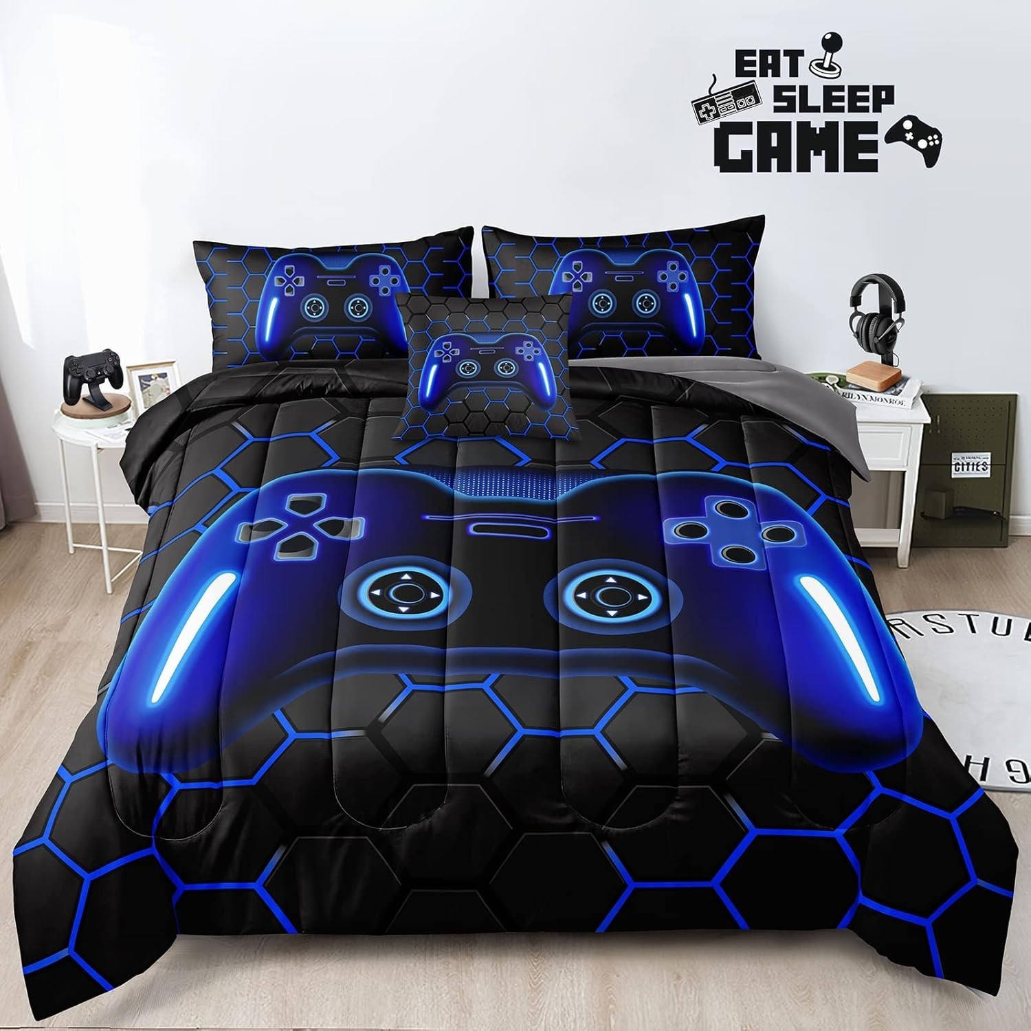 Fun and Soft 5-Piece Twin Gaming Bedding Set with Cushion Cover and Pillow