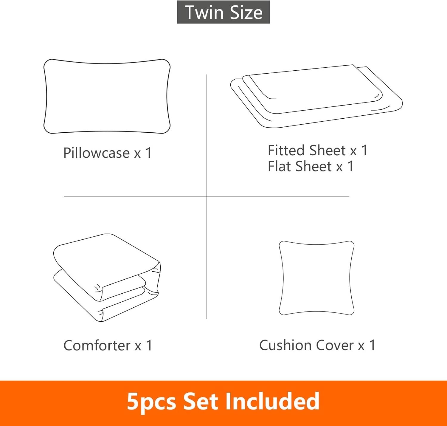 Set Includes: Comforter, Fitted Sheet, Flat Sheet, Pillow Case, Cushion Cover