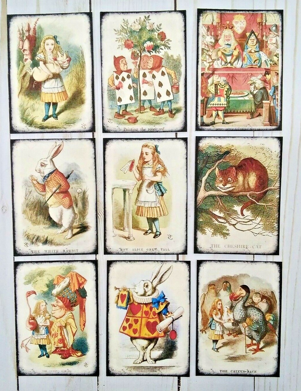 9 Vintage Style Alice in Wonderland Handmade Pocket Letter Cards Journals Crafts
