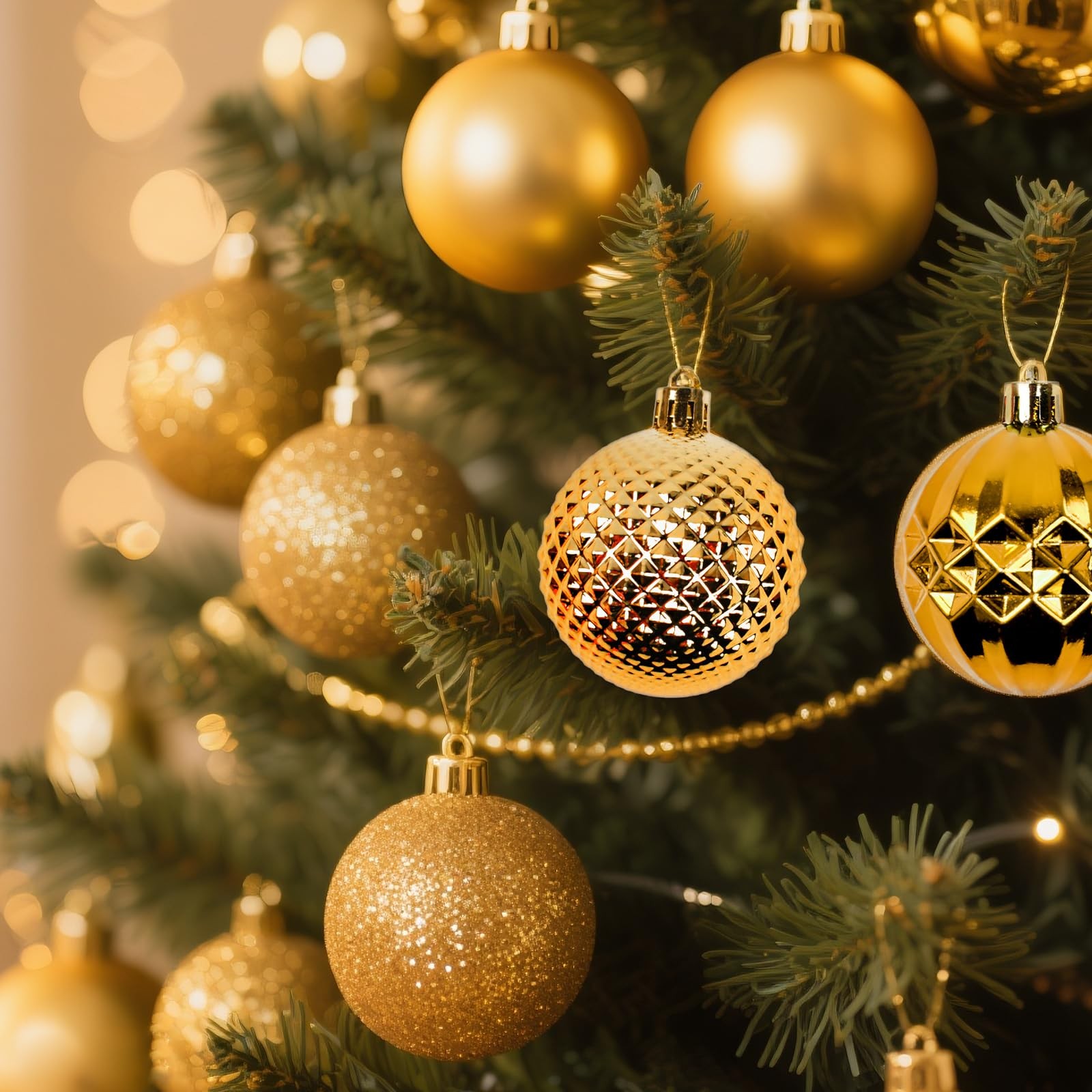как выглядит Christmas Tree Decorations Ornament Set, 60ct 2.36 Inches Gold фото