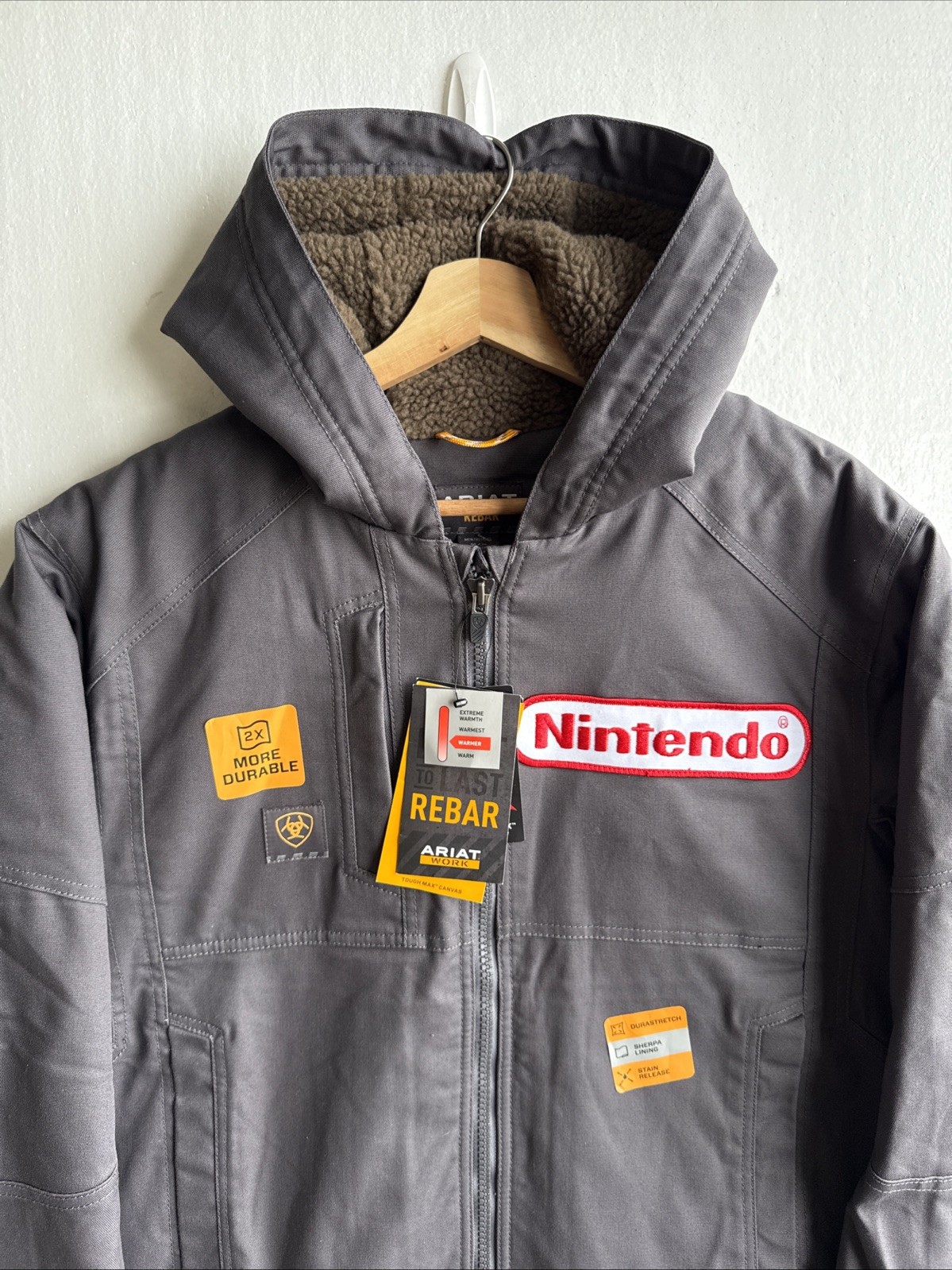 New Ariat Rebar DuraCanvas Nintendo Work Hooded Jacket Men's Medium Sherpa NWT