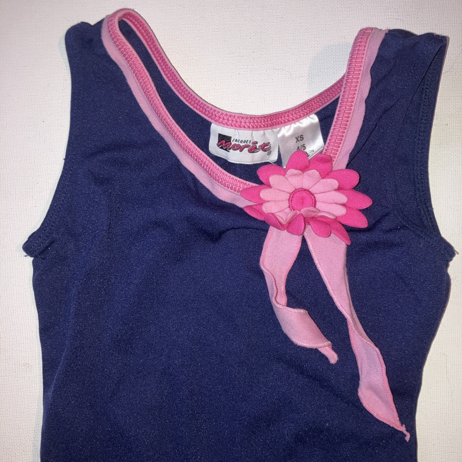 Jacques Moret Unitard Leotard Bodysuit Navy with Pink Flower Girls XS 4/5