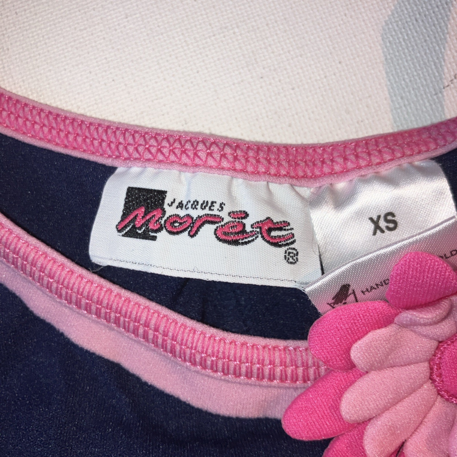 как выглядит Jacques Moret Unitard Leotard Bodysuit Navy with Pink Flower Girls XS 4/5 фото