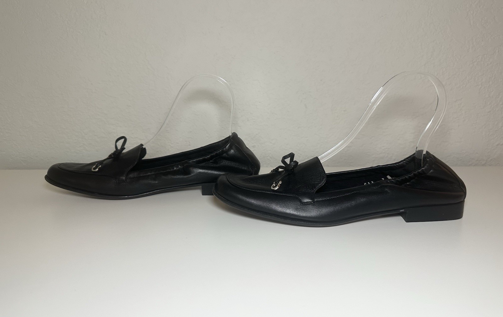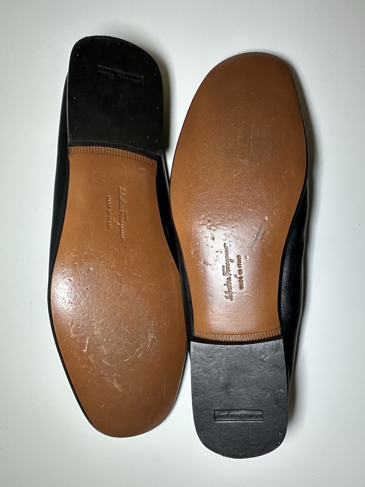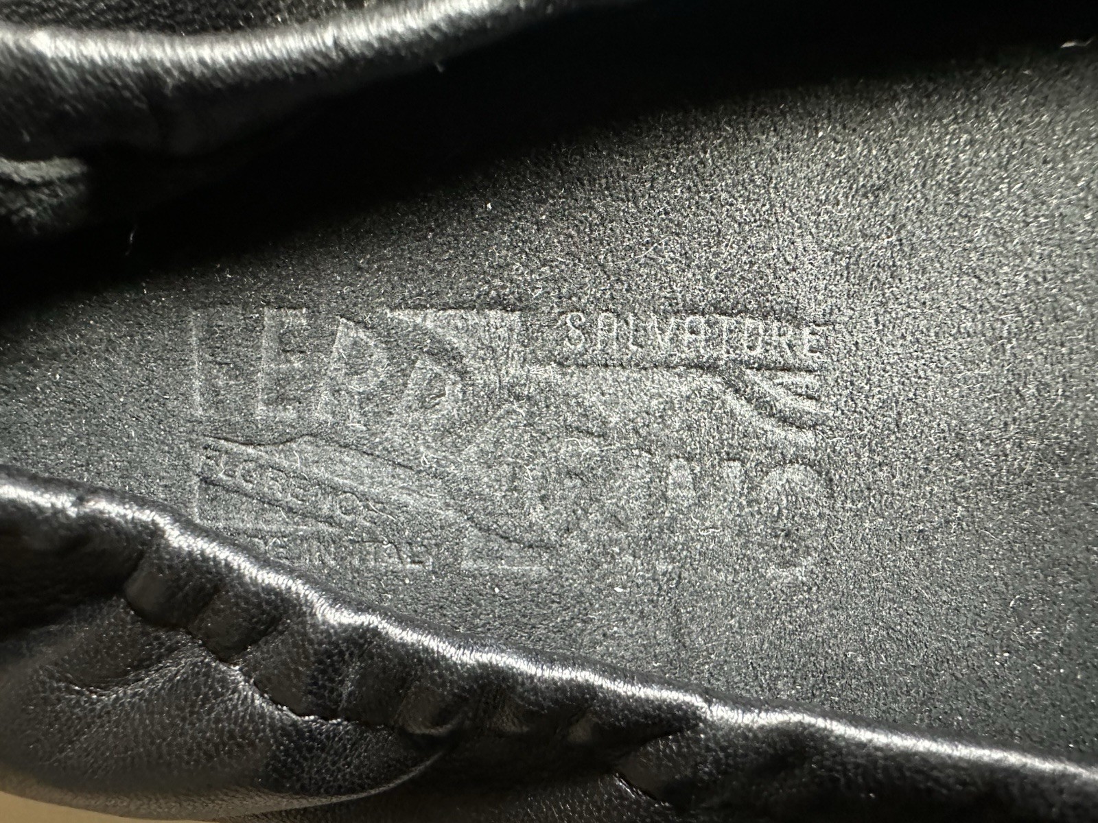 как выглядит SALVATORE FERRAGAMO RARE Black Leather Slip On Elastic Loafers Shoes Women 7 2A фото