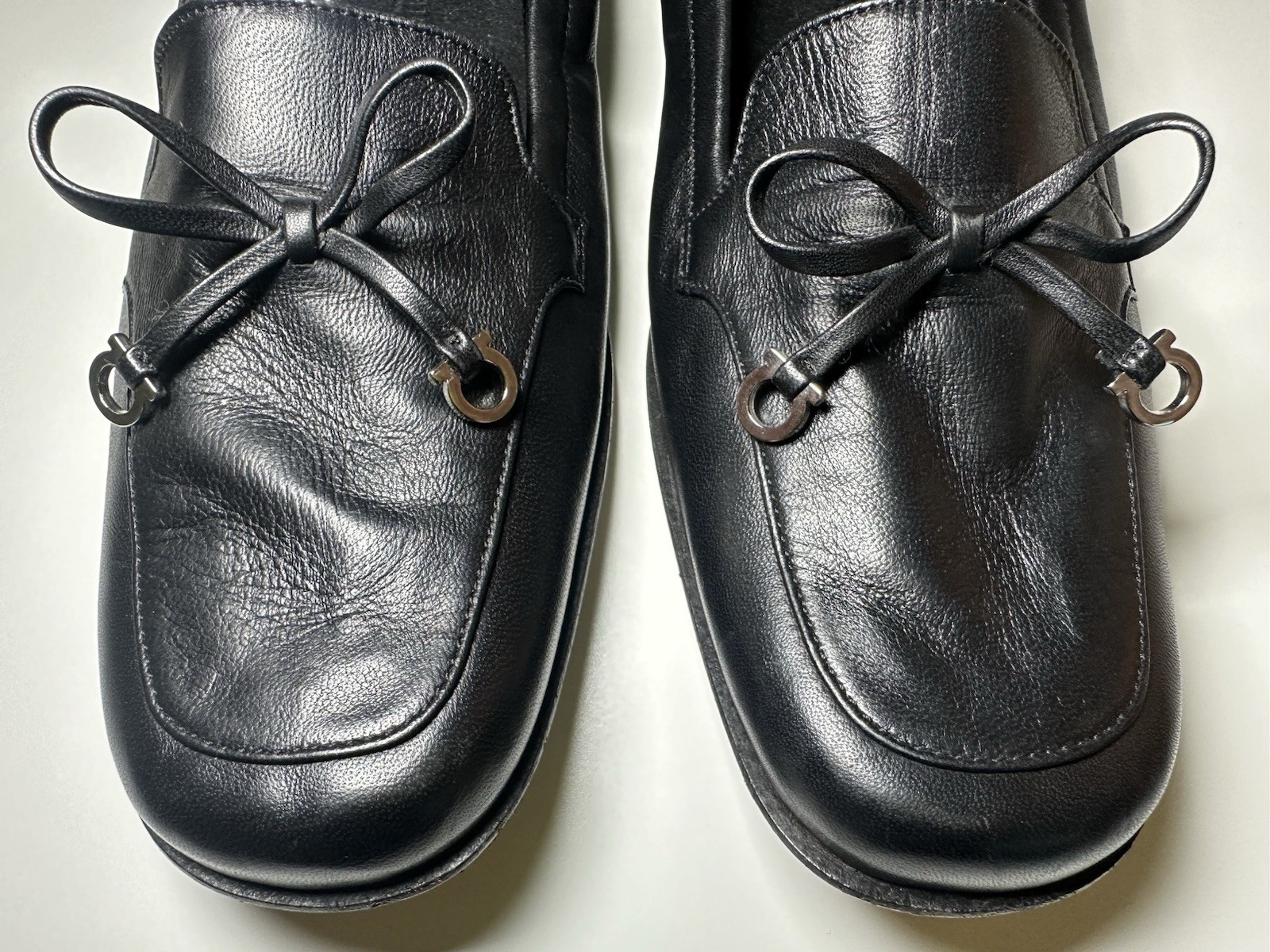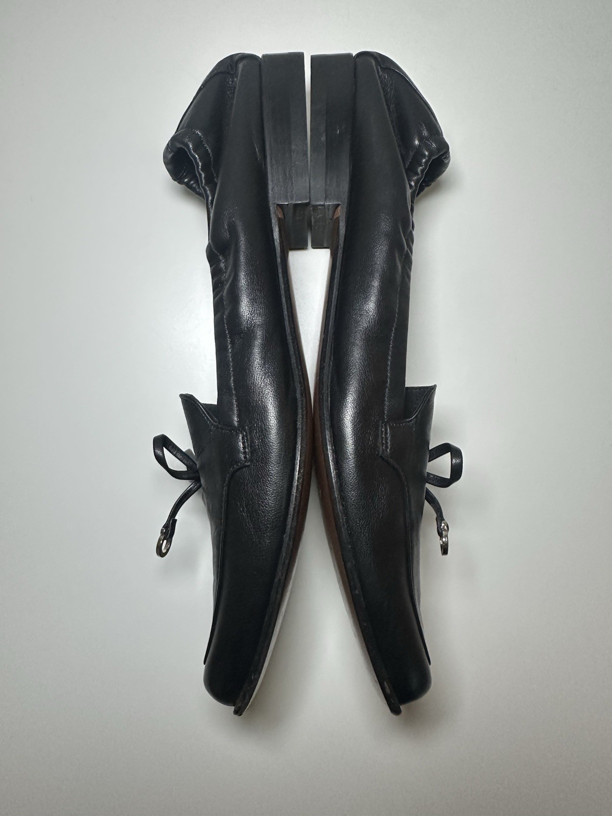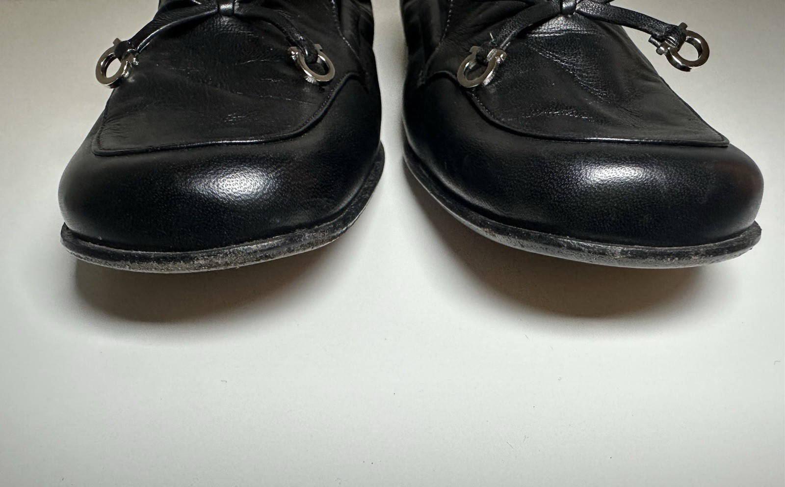 как выглядит SALVATORE FERRAGAMO RARE Black Leather Slip On Elastic Loafers Shoes Women 7 2A фото