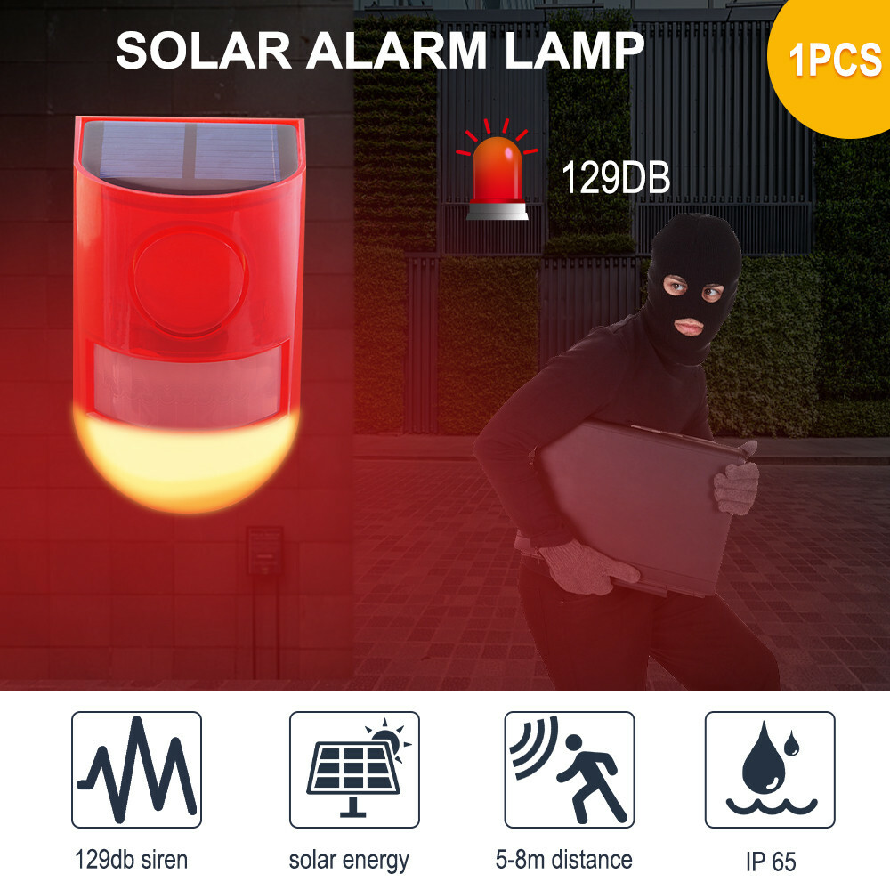 2Pcs Solar LED Alarm Light Solar Strobe Light Wireless Motion Sensor Detector