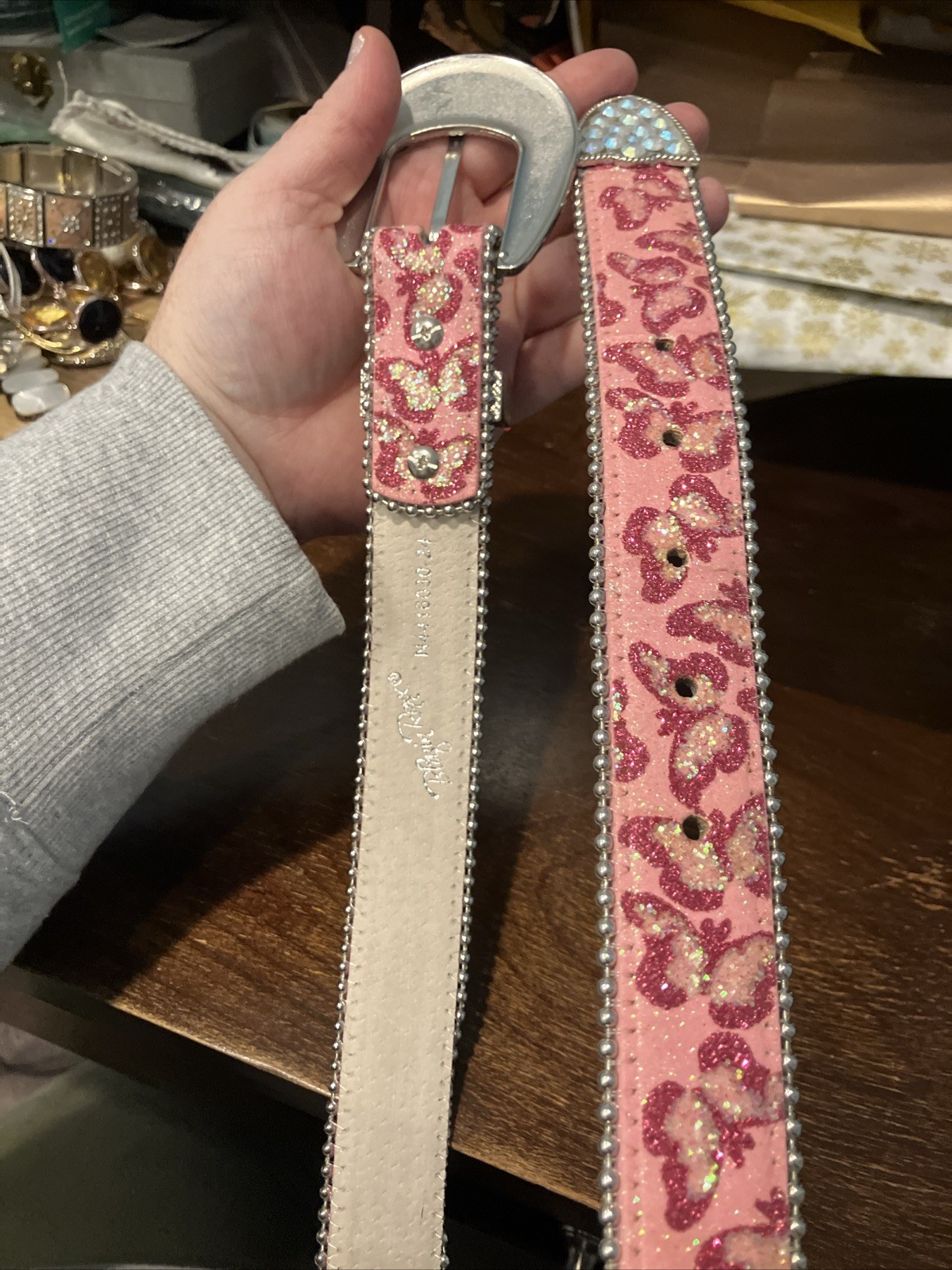 как выглядит Nocona Girls Blazin Roxx Belt Butterfly Sparkle Bling Cowgirl Western 21 - 26 фото