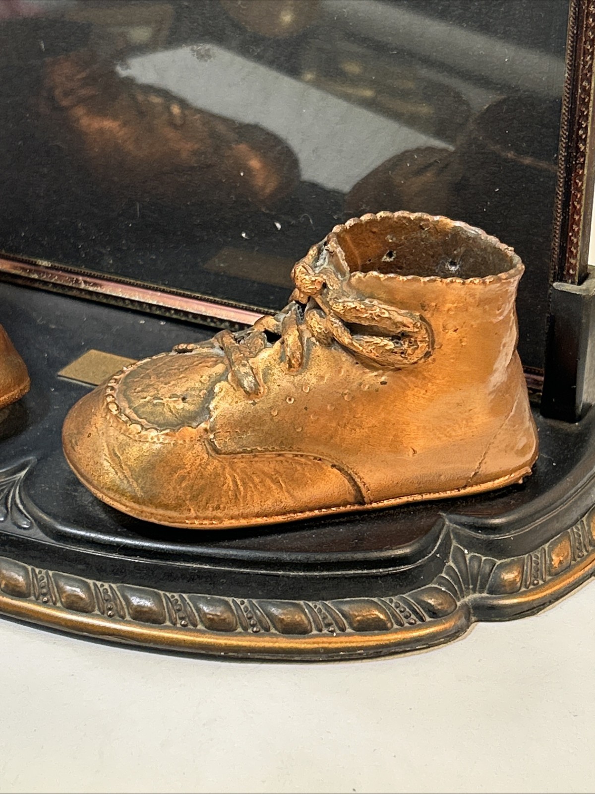• Vintage Metal Baby Shoes Picture Frame 1953