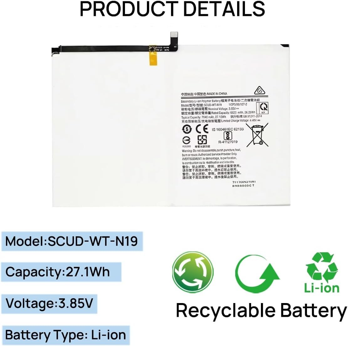 Тип: Replacement Battery