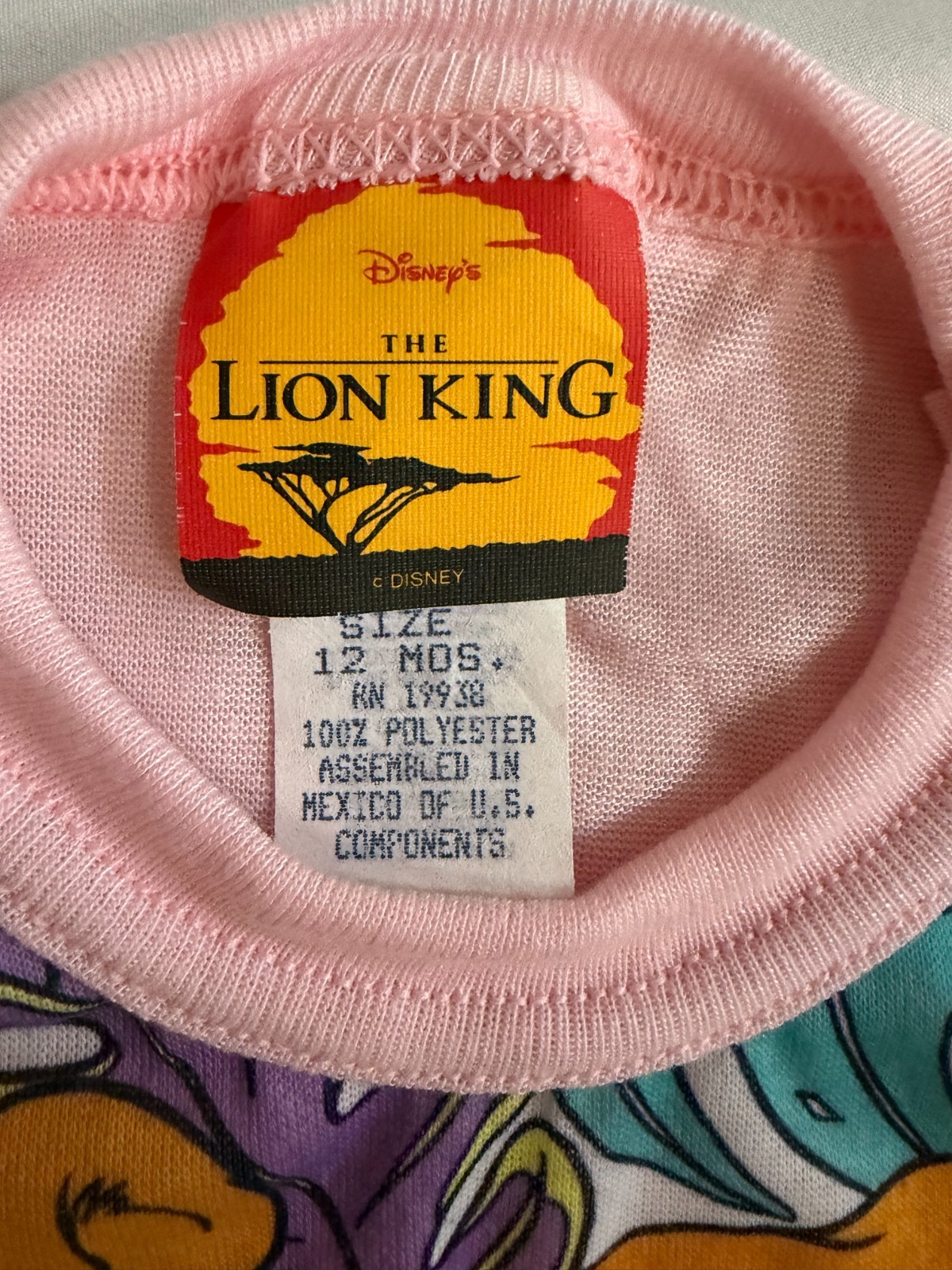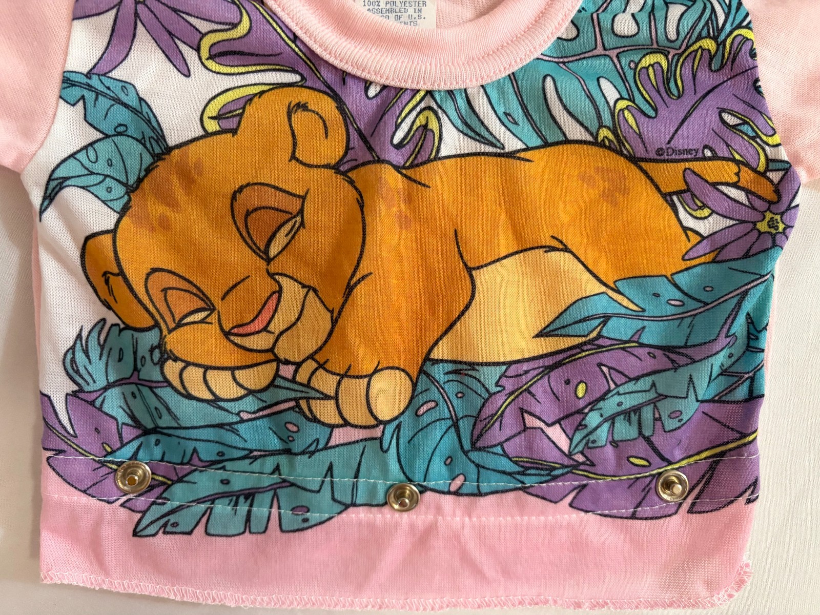 Vintage 90s Disney Lion King Simba Baby PJ Shirt 12 Mos Pink Snap Hem