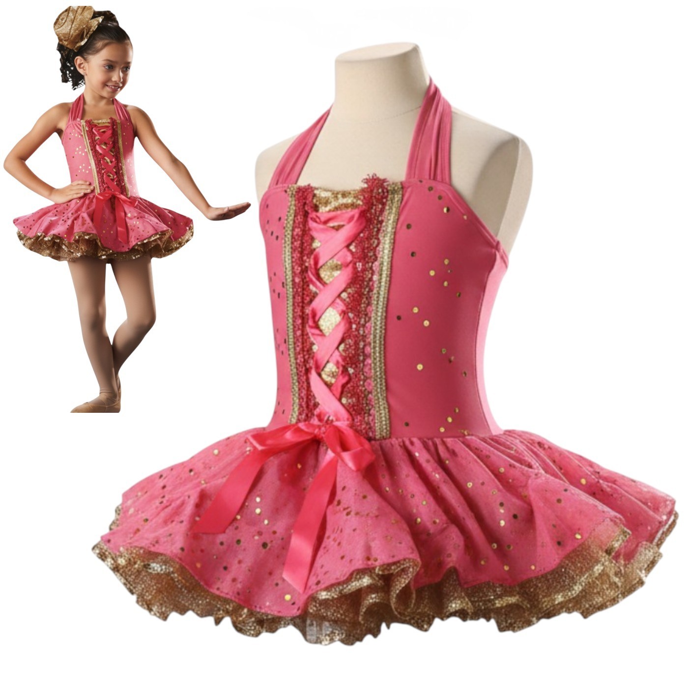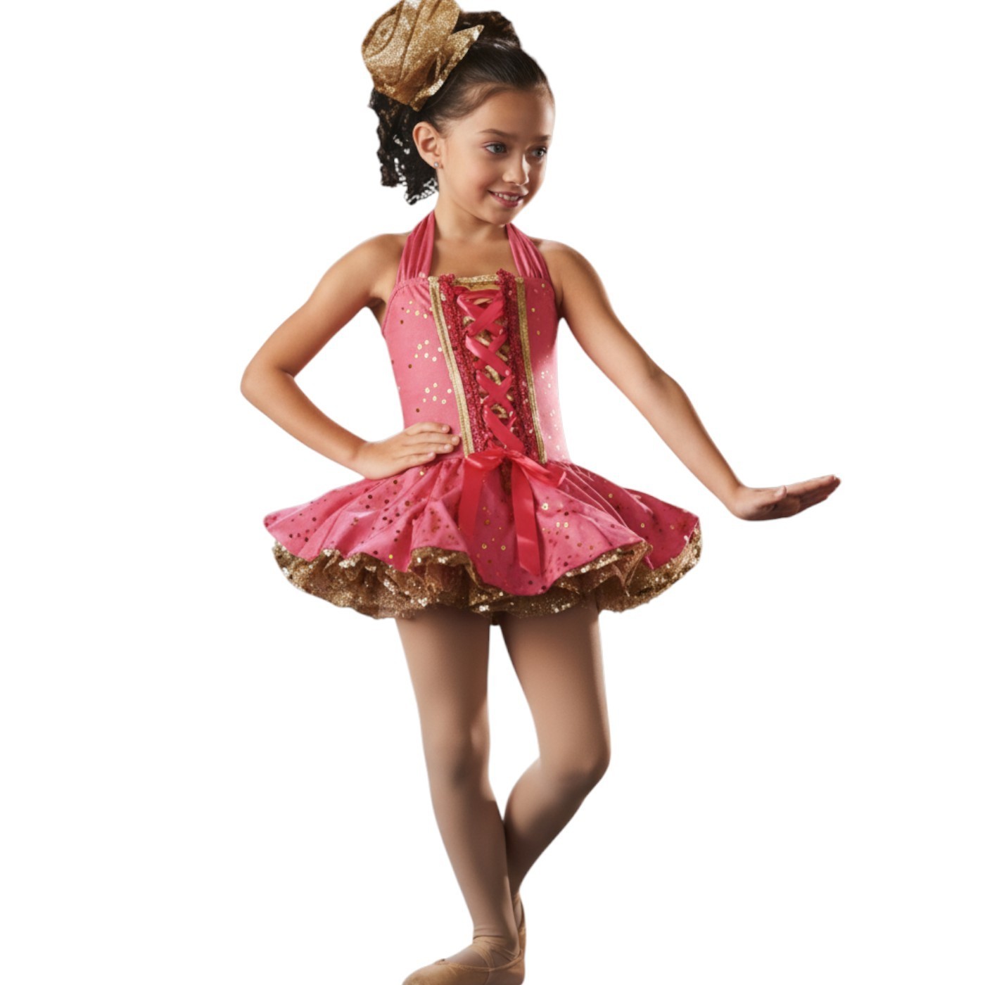 Lot of 8 Gold Dust Child X-Small Dance Costume Baby Tap Dress Flower Shoe Bows
