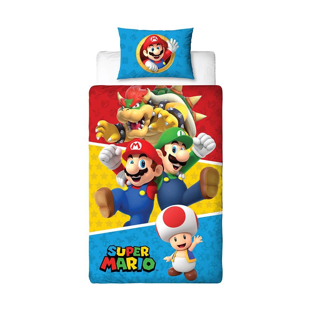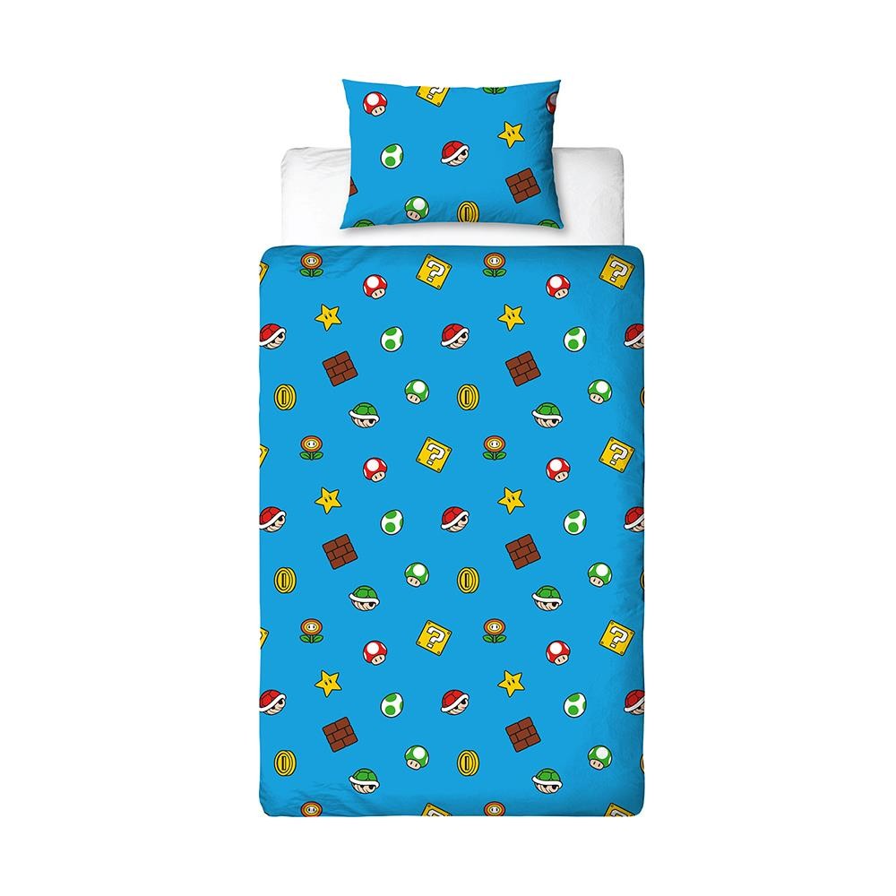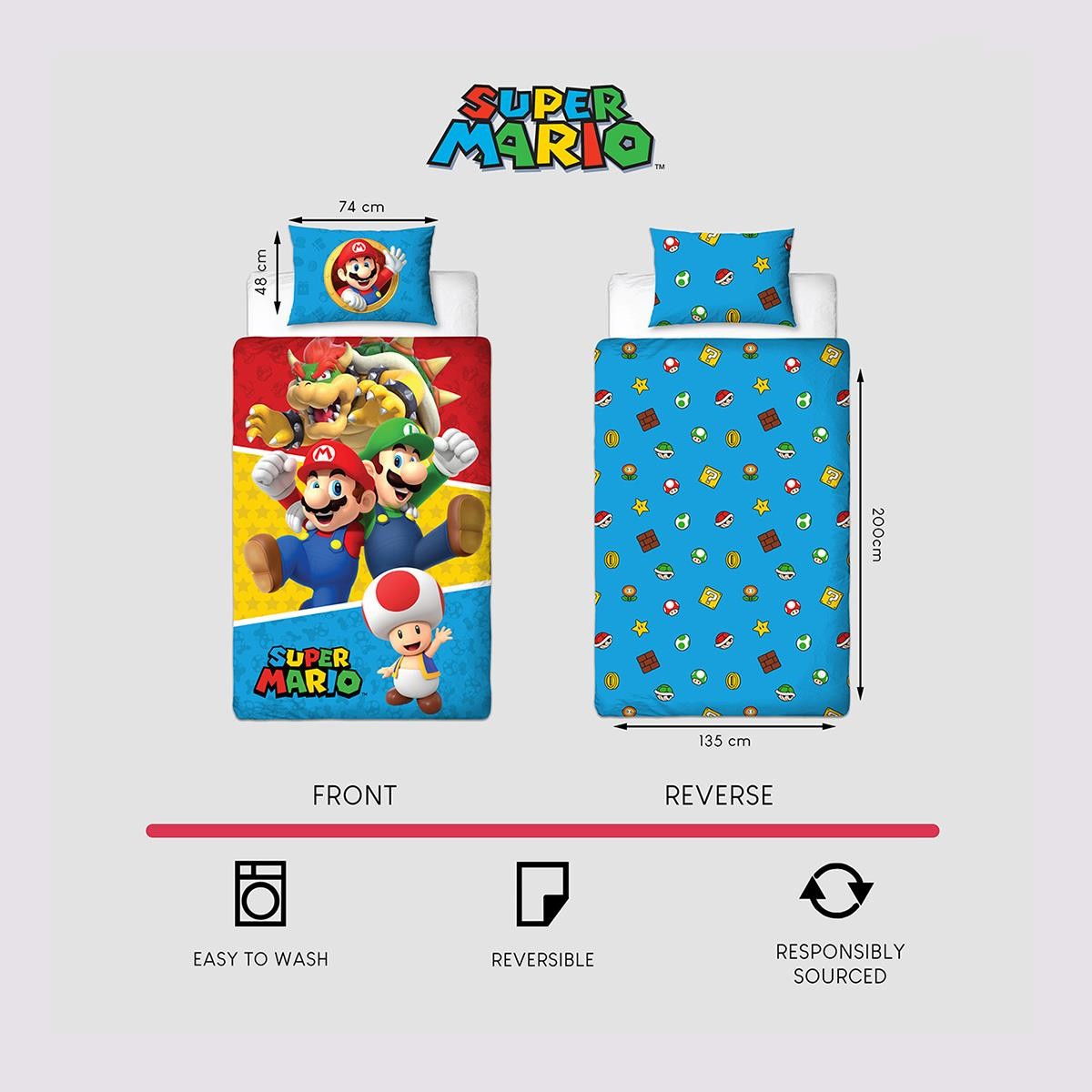 Super Mario Single Duvet Cover Set Splitter Nintendo Reversible Bedding Multi