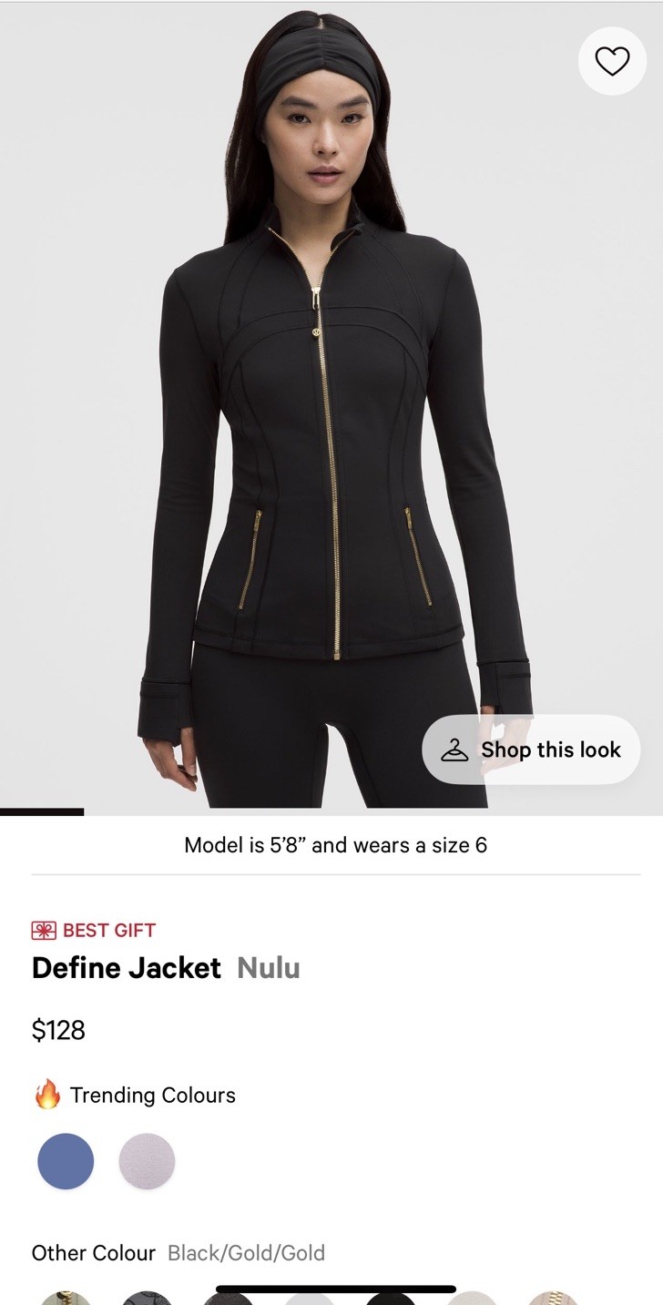 как выглядит Lululemon Define Jacket Nulu, Color: Black/Gold/Gold, Size: 6. LW4CD5S фото