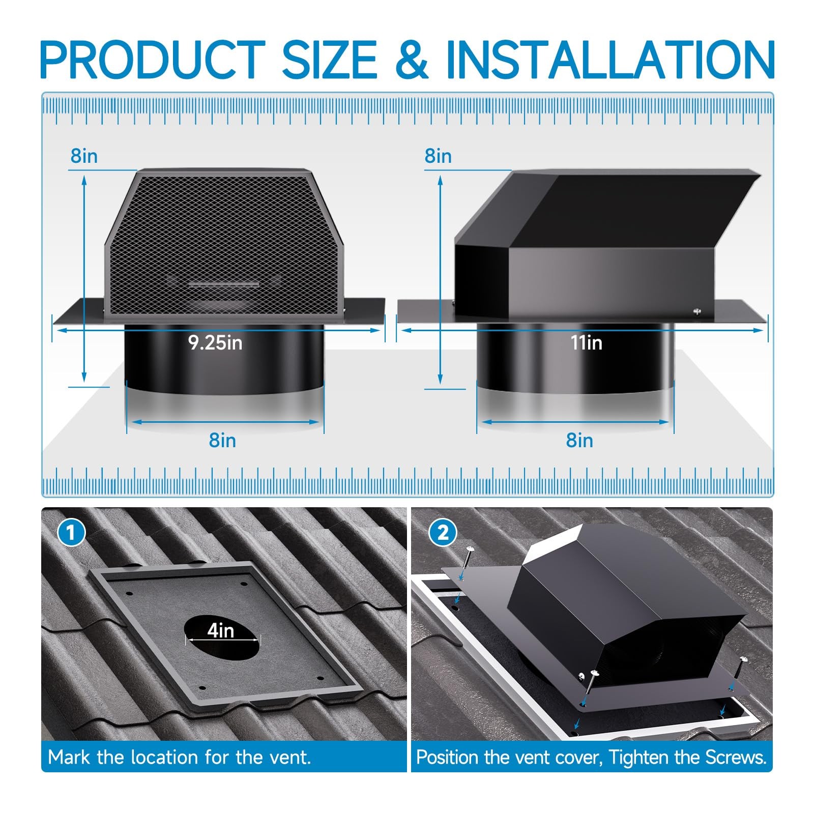 4in Roof Vent Cap Galvanized Steel Watertight Airflow Exhaust Vent with Damper