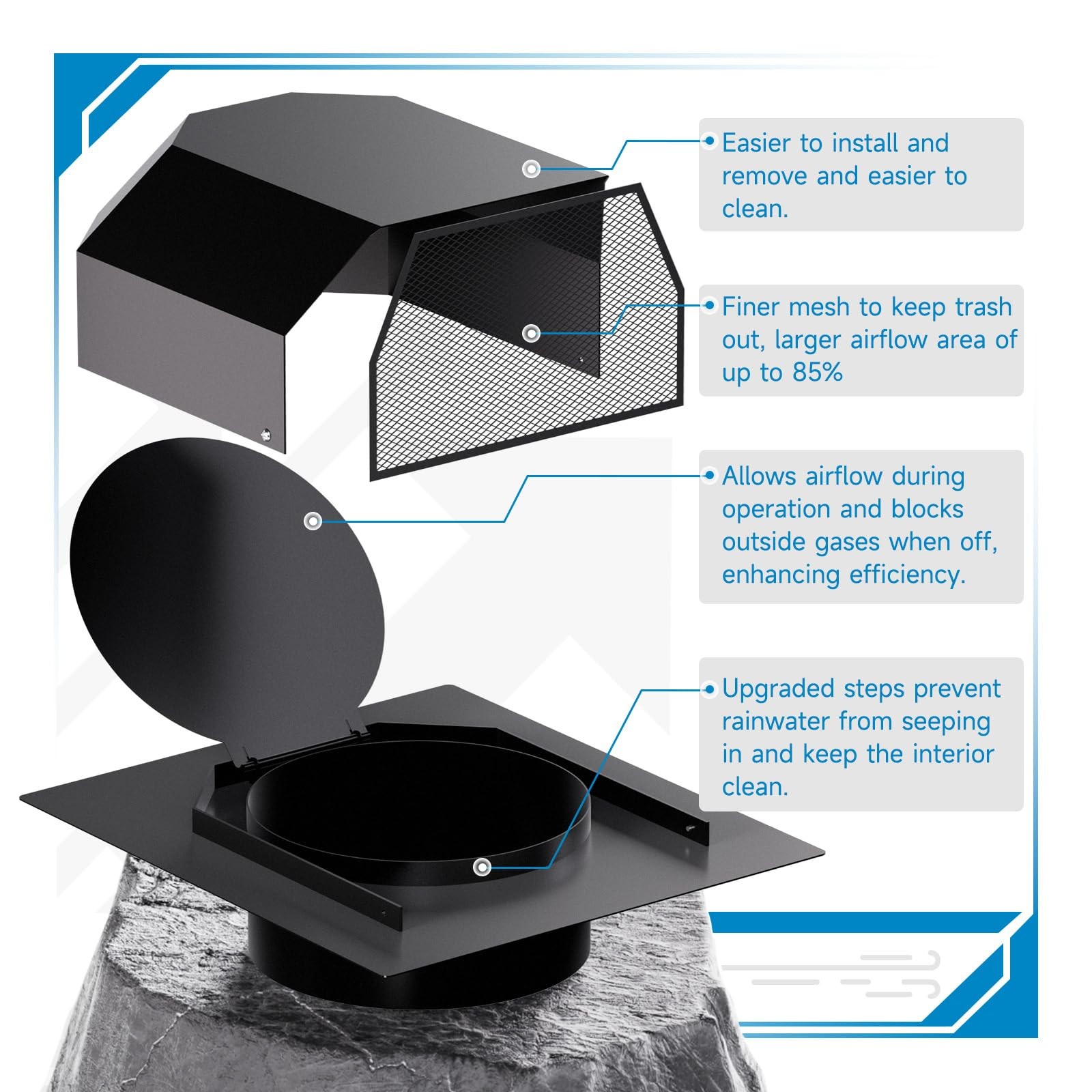 как выглядит 4in Roof Vent Cap Galvanized Steel Watertight Airflow Exhaust Vent with Damper фото