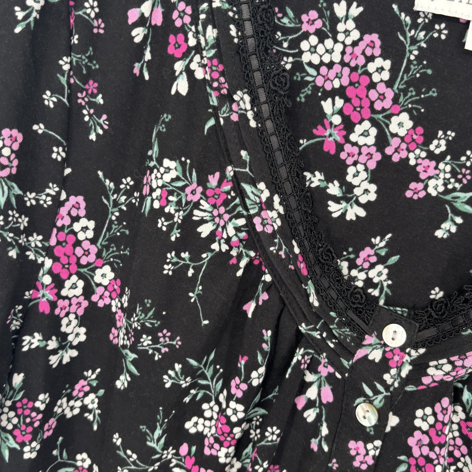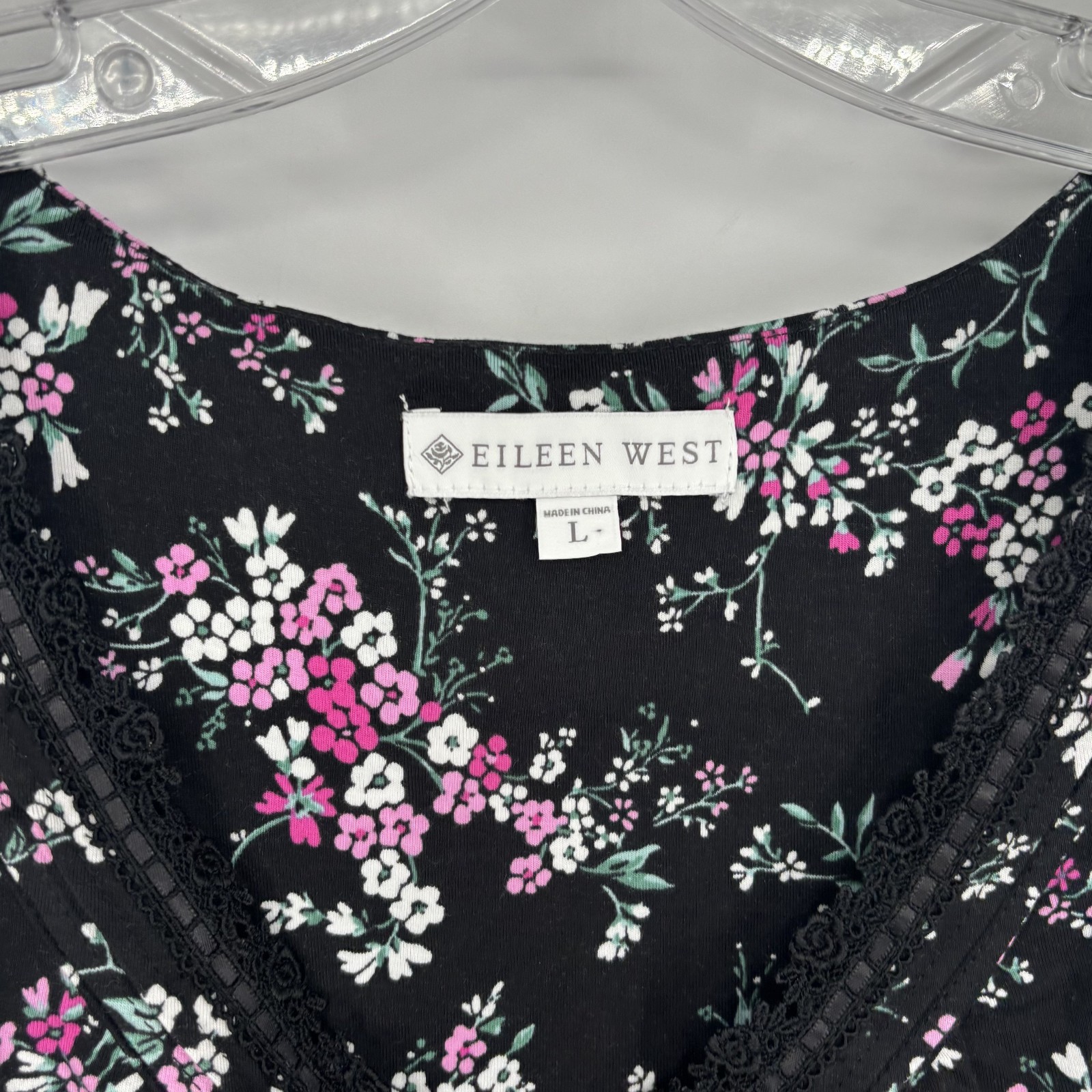 Eileen West L Large Black Floral Lace Trim Nightgown Nightie Night Dress