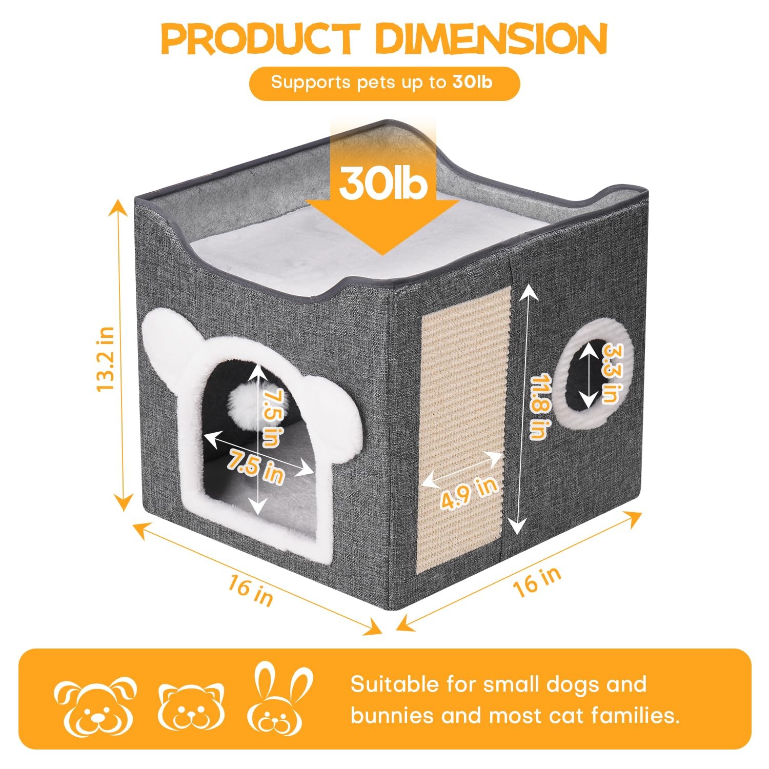 Cat Beds for Indoor Cats, Large Cat House Foldable Cat Cave with Scratch Pad ...