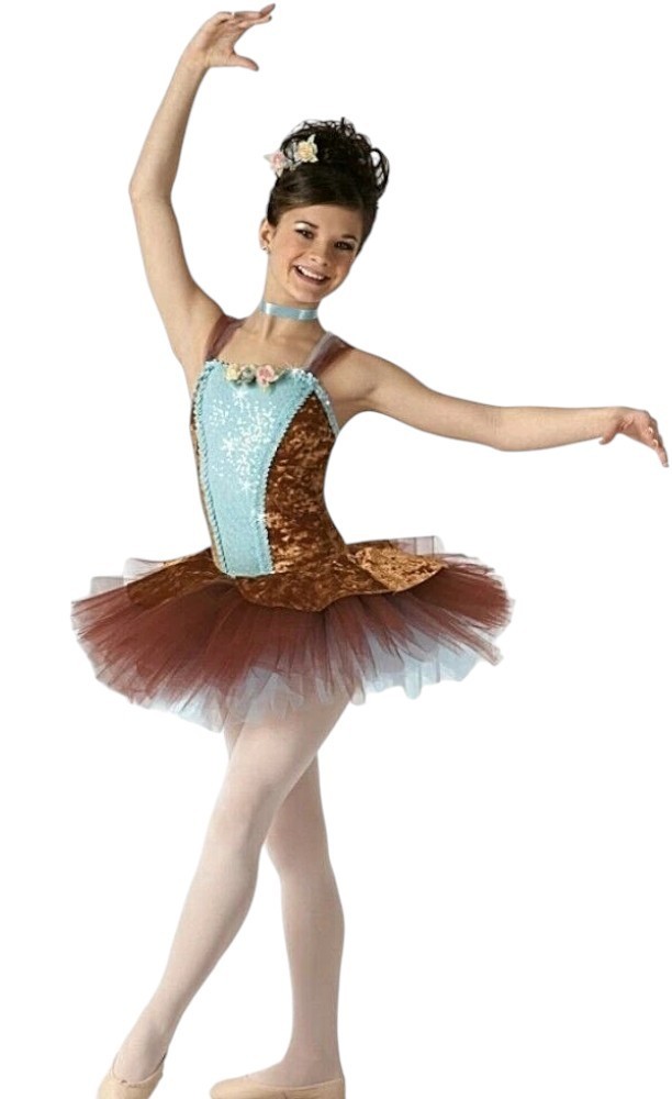 Wood Sprite Child X-Small Dance Costume Ballet Tutu Ginger Panne Velvet Flowers