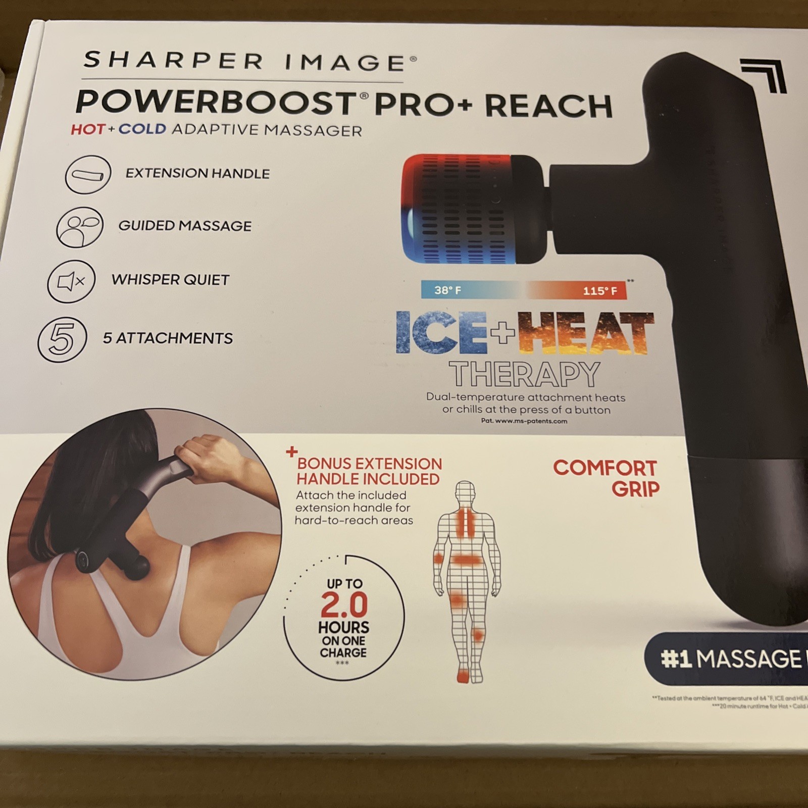 Sharper Image Powerboost Pro Reach Percussion Massager with 5 Attachments Black