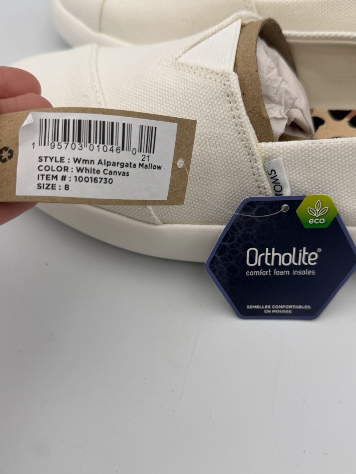 как выглядит TOMS Women s Mallow Alpargata White Canvas Slip-On Shoes Size 8 New w/ Tags фото