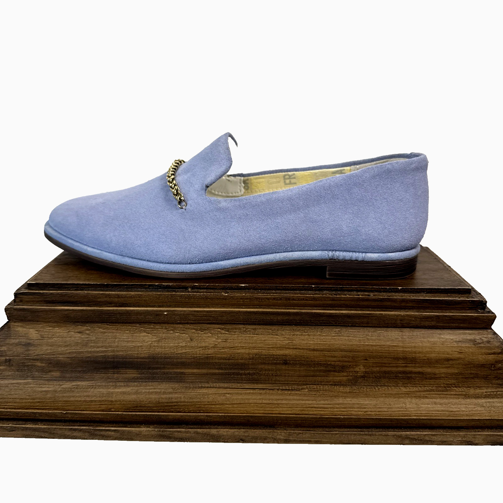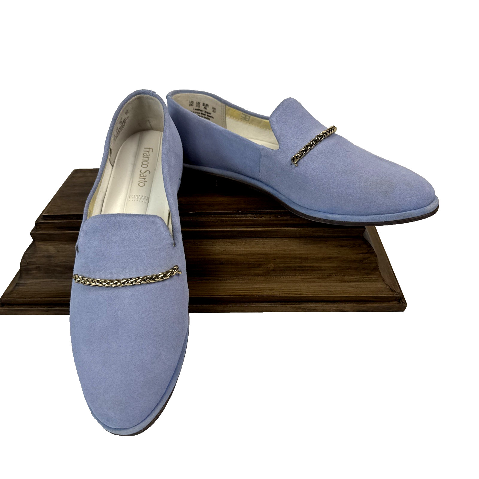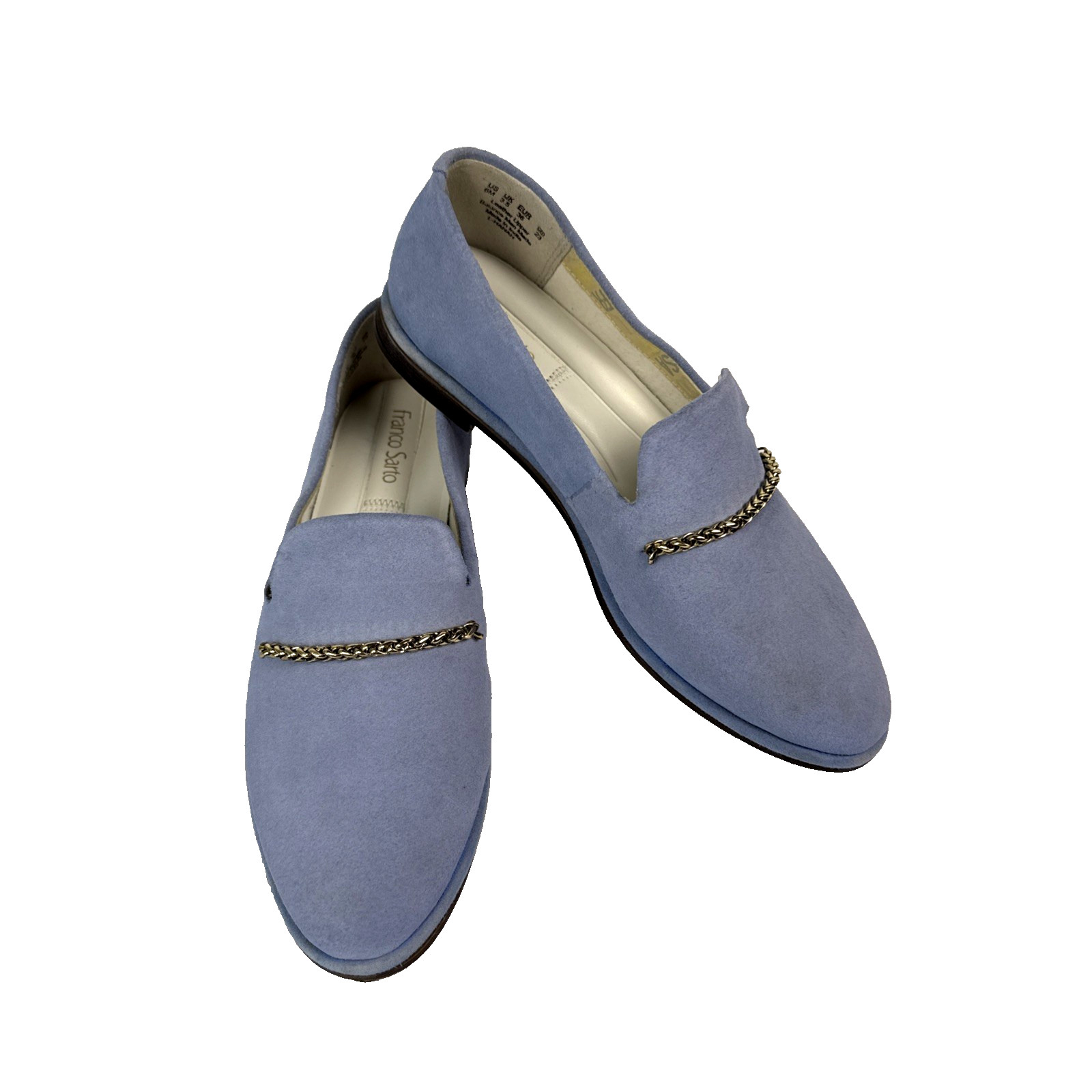как выглядит Franco Sarto Loafer Hanah Powder Blue Suede With Gold Chain Accent Sz 6M Preppy фото
