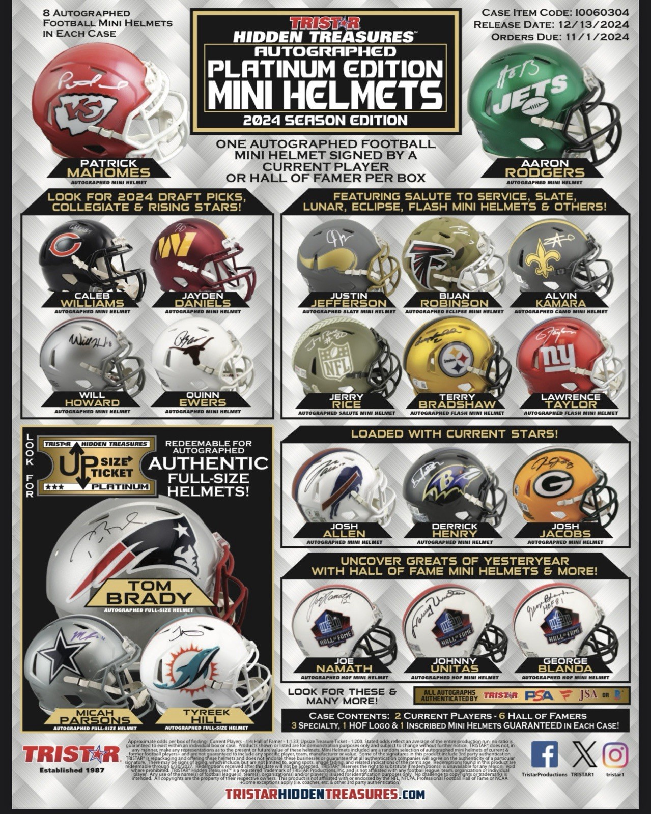 • 2024 TriStar Hidden Treasure Autographed Mini Helmet Platinum Sealed Mystery Box