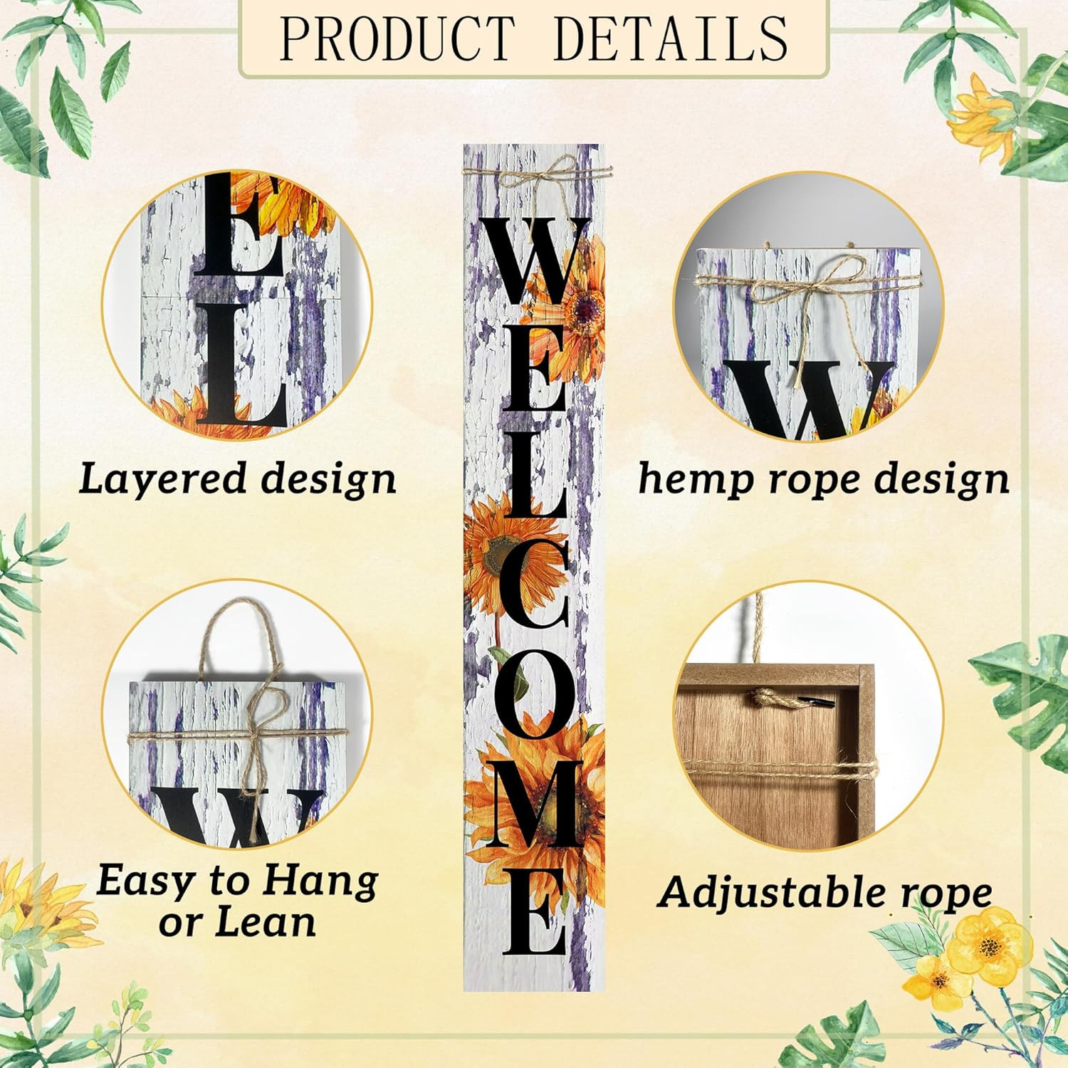 Sunflower Welcome Porch Sign Decor Summer Wooden Hanging Sign Door Porch Standin