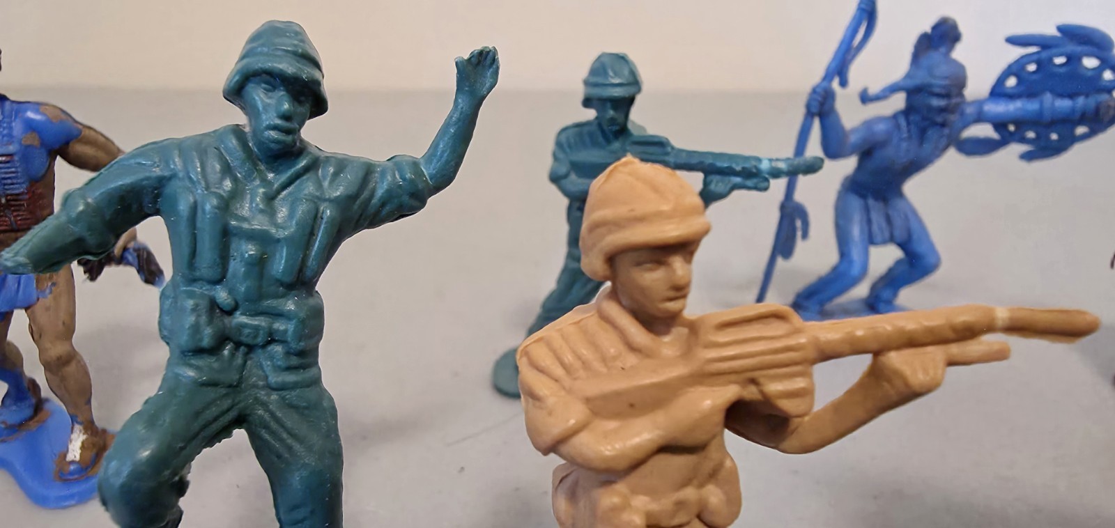 как выглядит Lot Of 11 Army Men And Native American Solid Color Figures фото