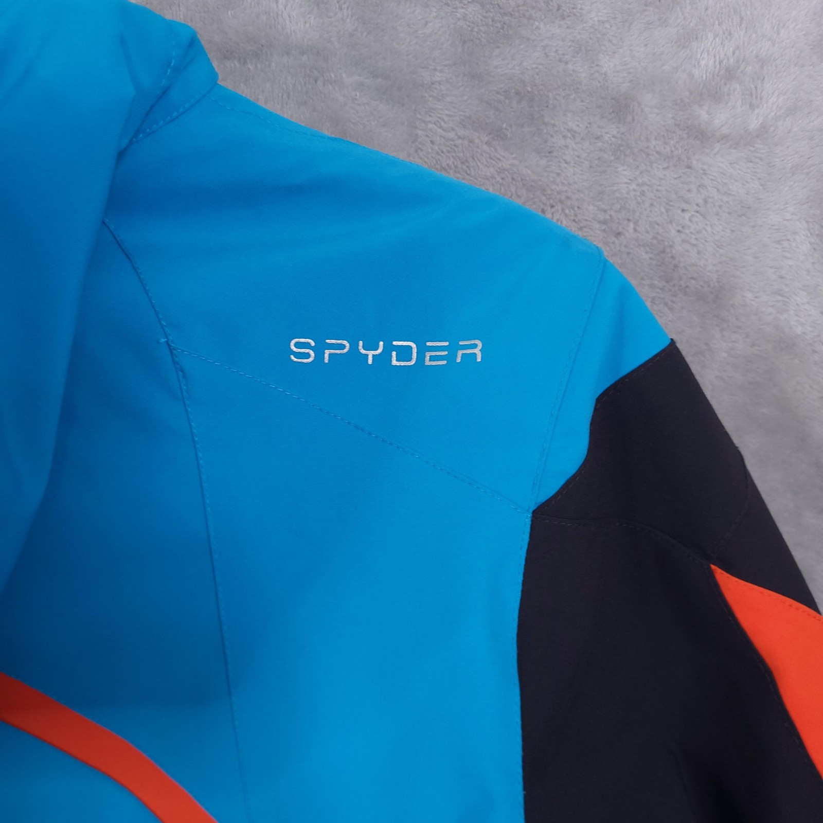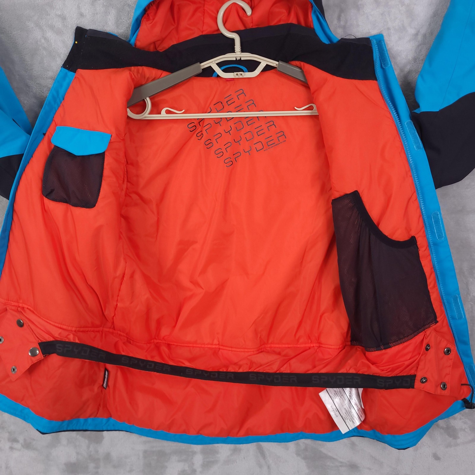 как выглядит Spyder Ski Jacket Kids 18 Blue Blue Hooded Insulated Colorblock 235016 F16 фото