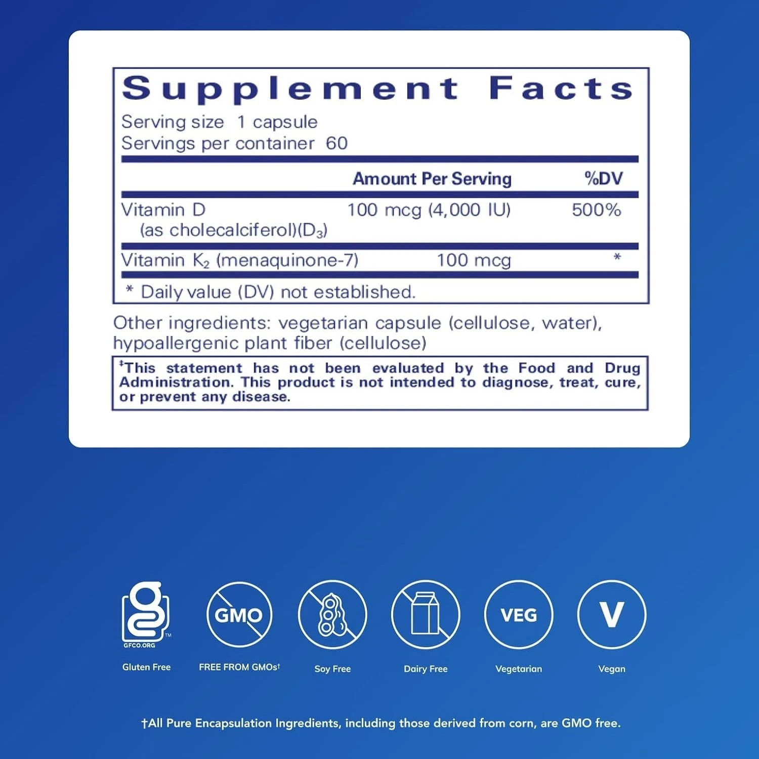 Pure Encapsulations Vitamin D3 K2 - 60 capsules EXP 10/2027
