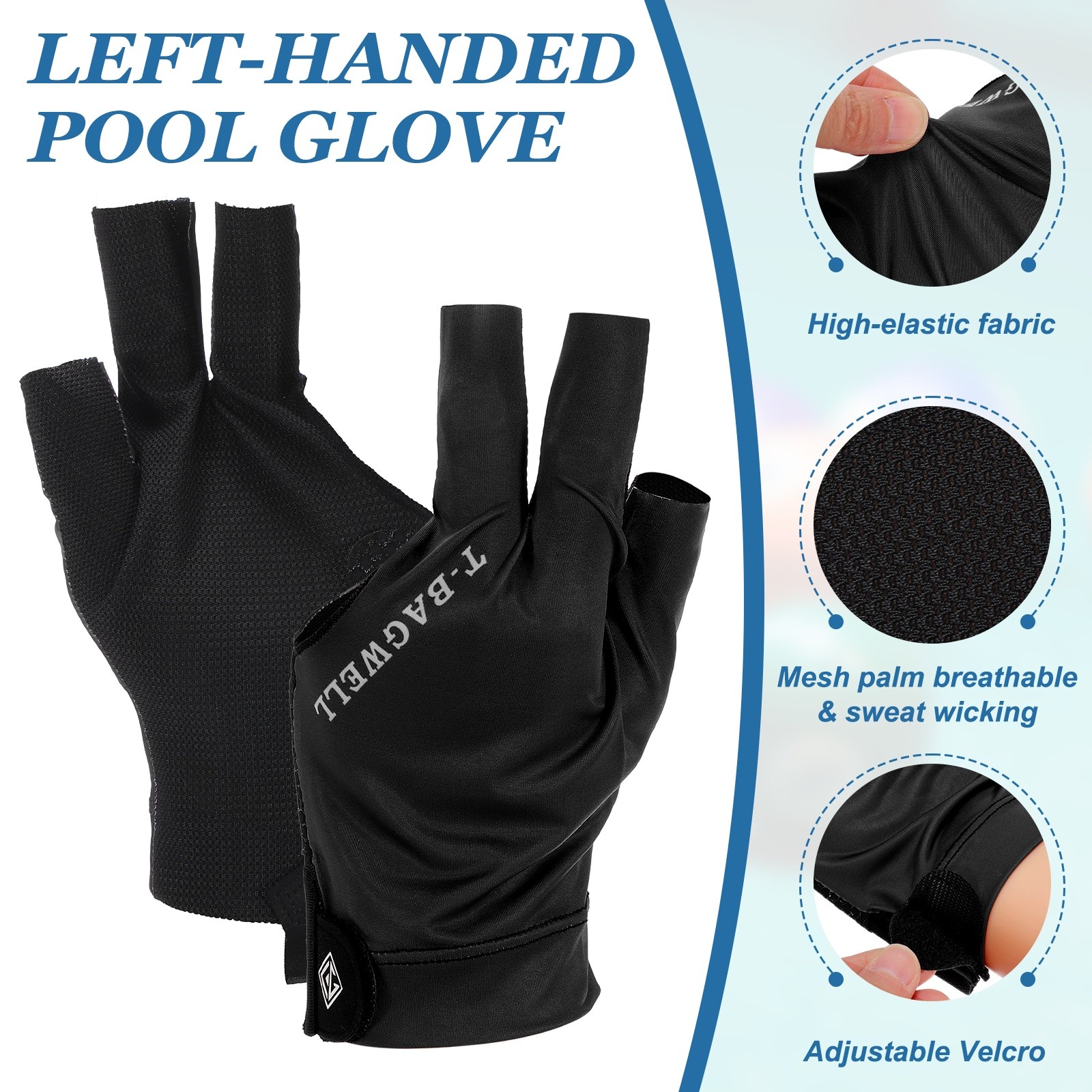 3 Finger Pool Glove Left Hand, Billiard Gloves, Black