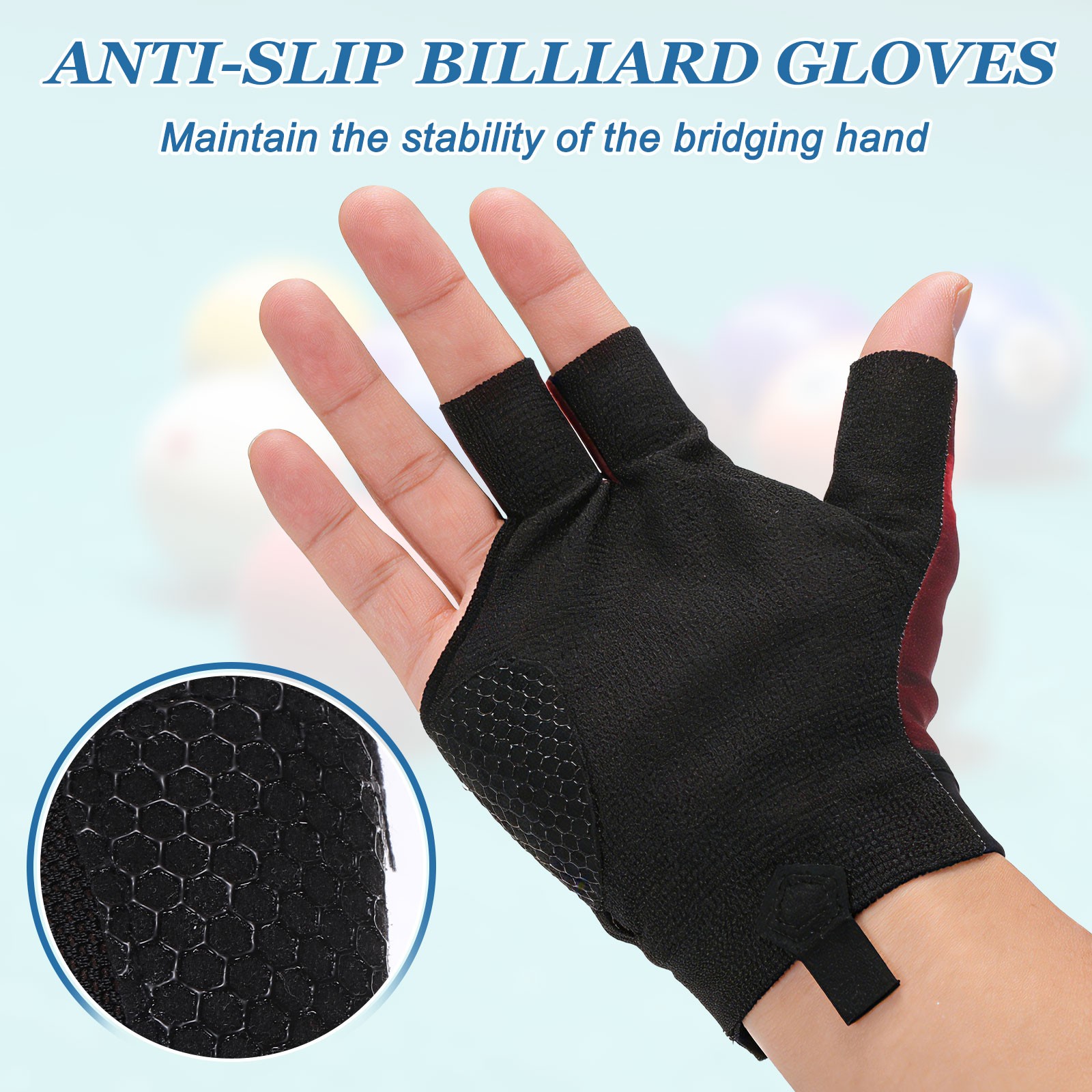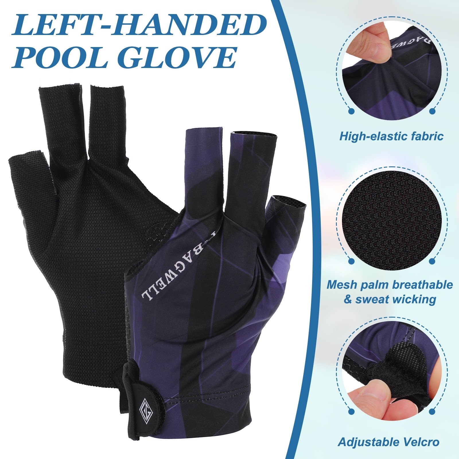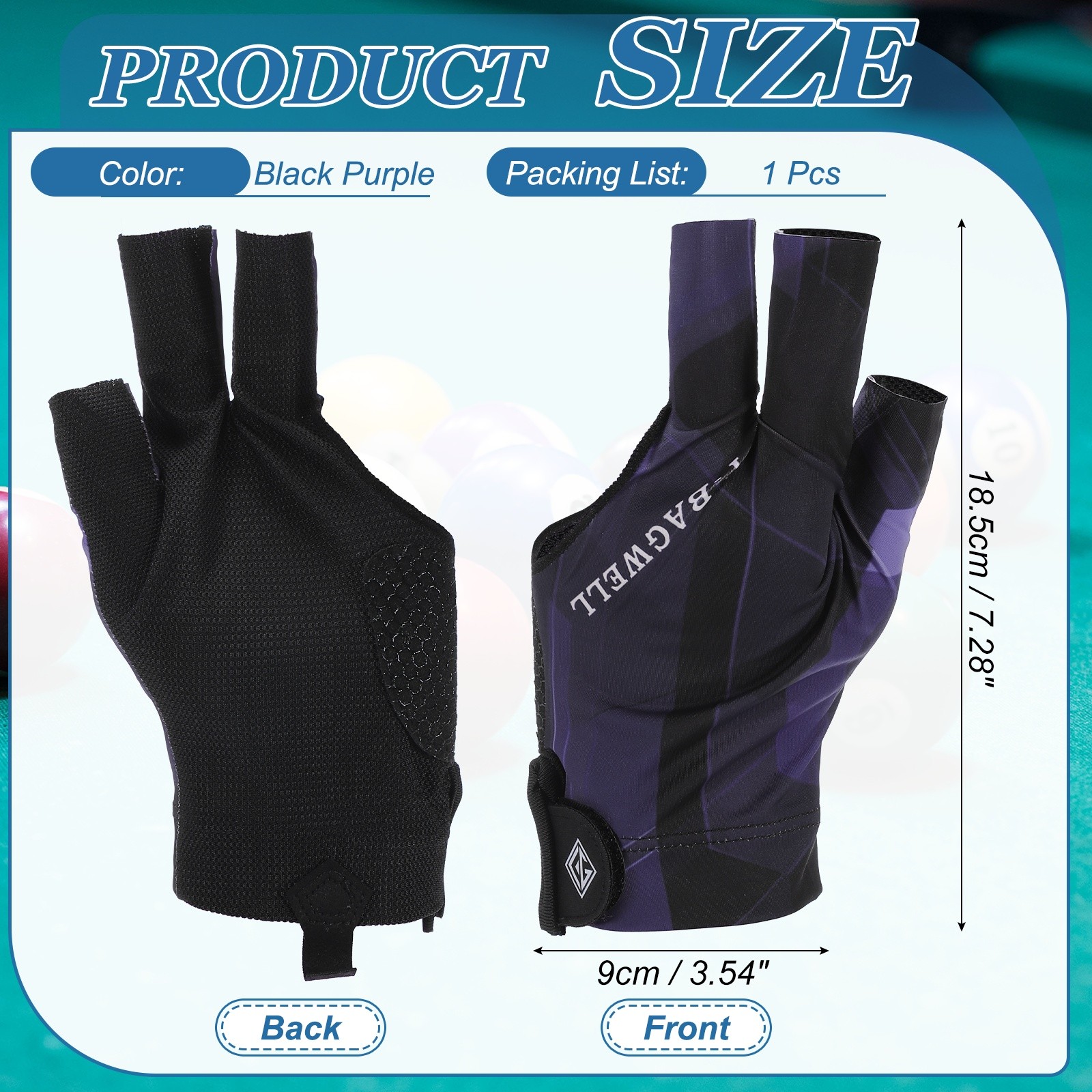 3 Finger Pool Glove Left Hand, Billiard Gloves, Black Purple