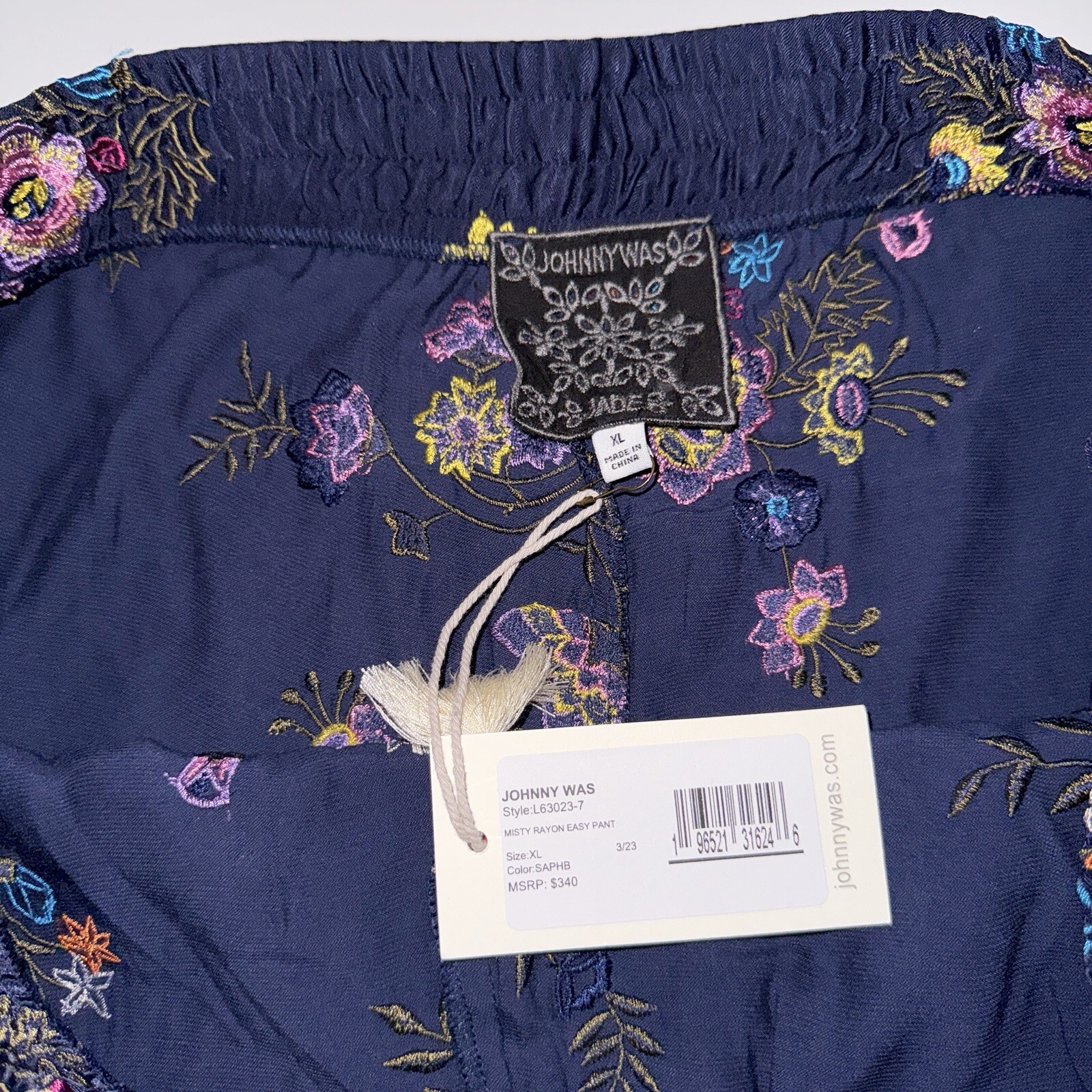 Johnny Was Misty Easy Pant Rayon Sapphire Blue XL;NWT