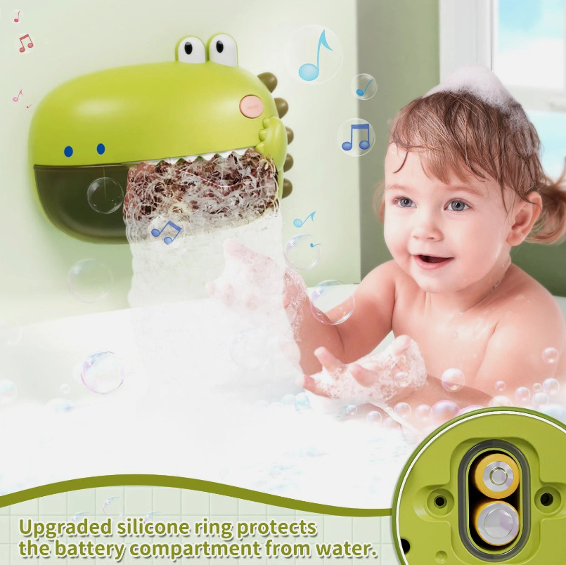 как выглядит Bubble Machine Bath Time Toy with Music for Fun for Kids Grechi Dinosaur GREEN фото