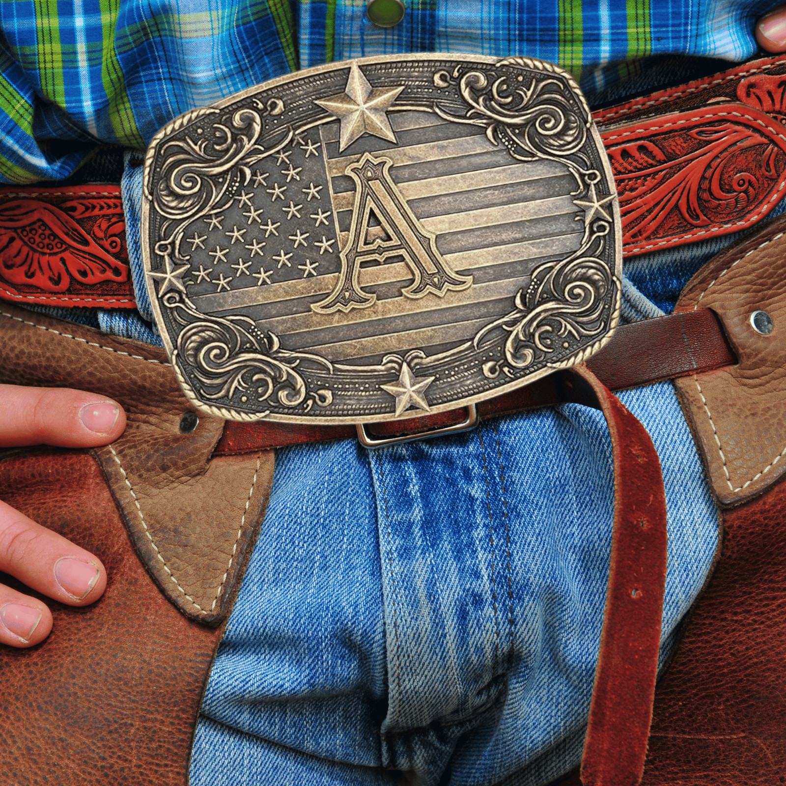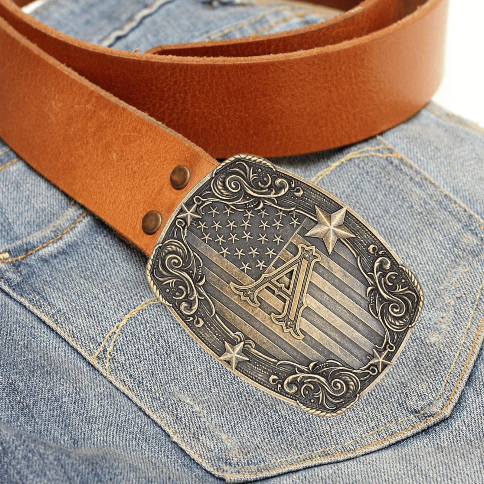 Western Belt Buckle Men Initial Letter ABCDJRM to Z Rodeo Cowboy American Flag