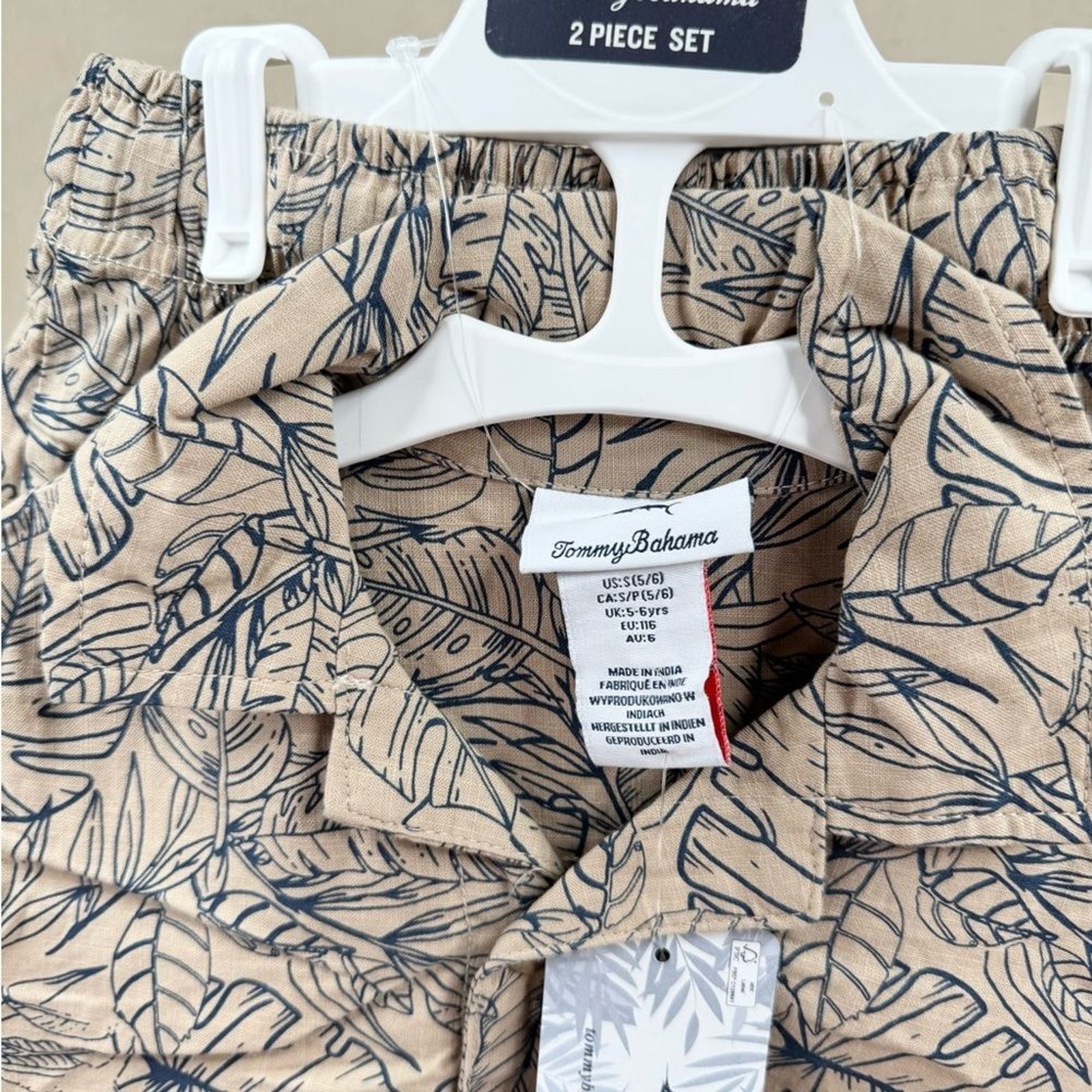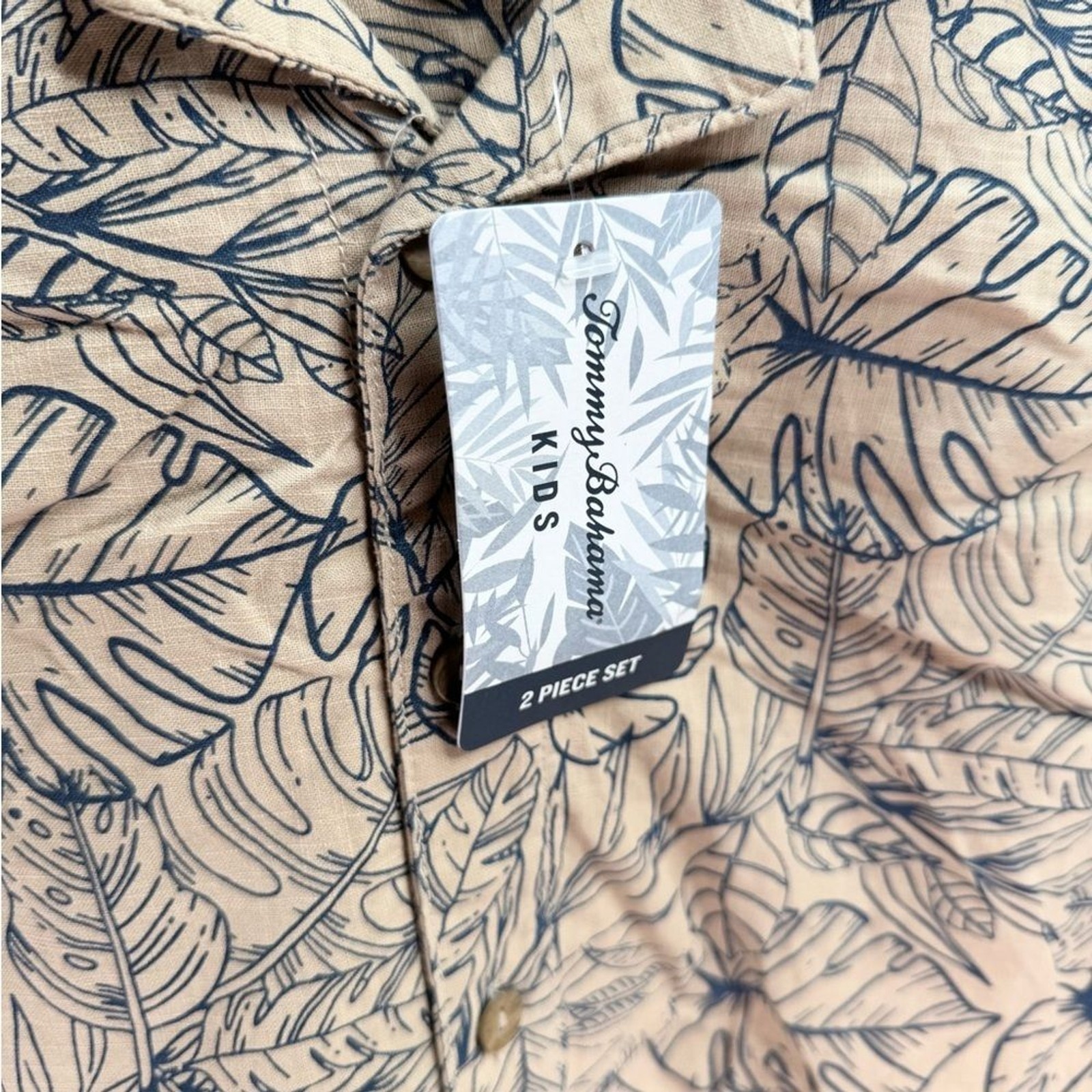как выглядит Tommy Bahama Kids Tropical Leaf Print 2 Piece Outfit Boys Size 5/6 Beige Blue фото