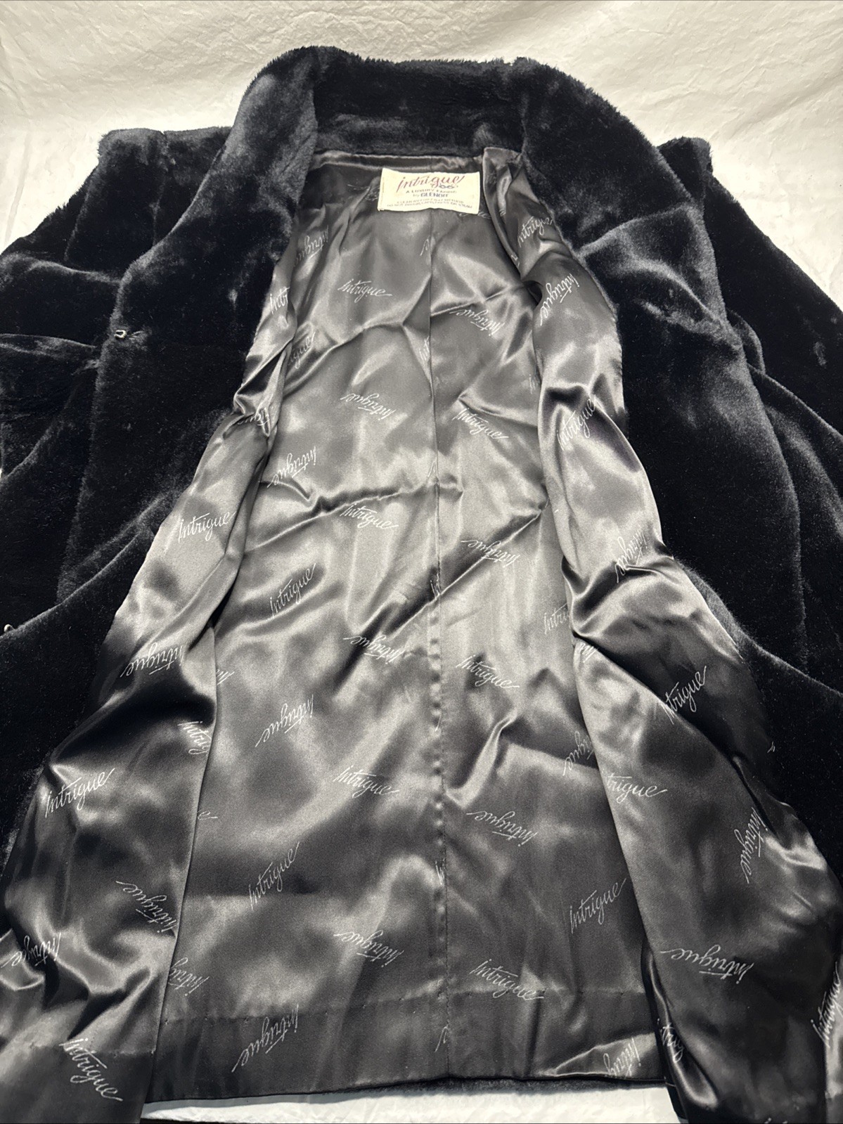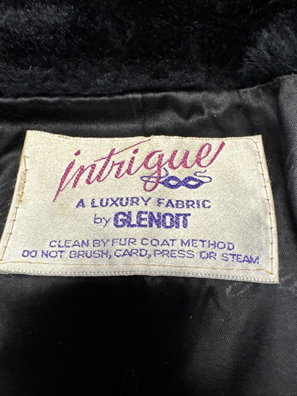 Vintage Black Faux Fur Coat Intrigue Luxury Fabric by Glenoit Made In USA Sz XL
