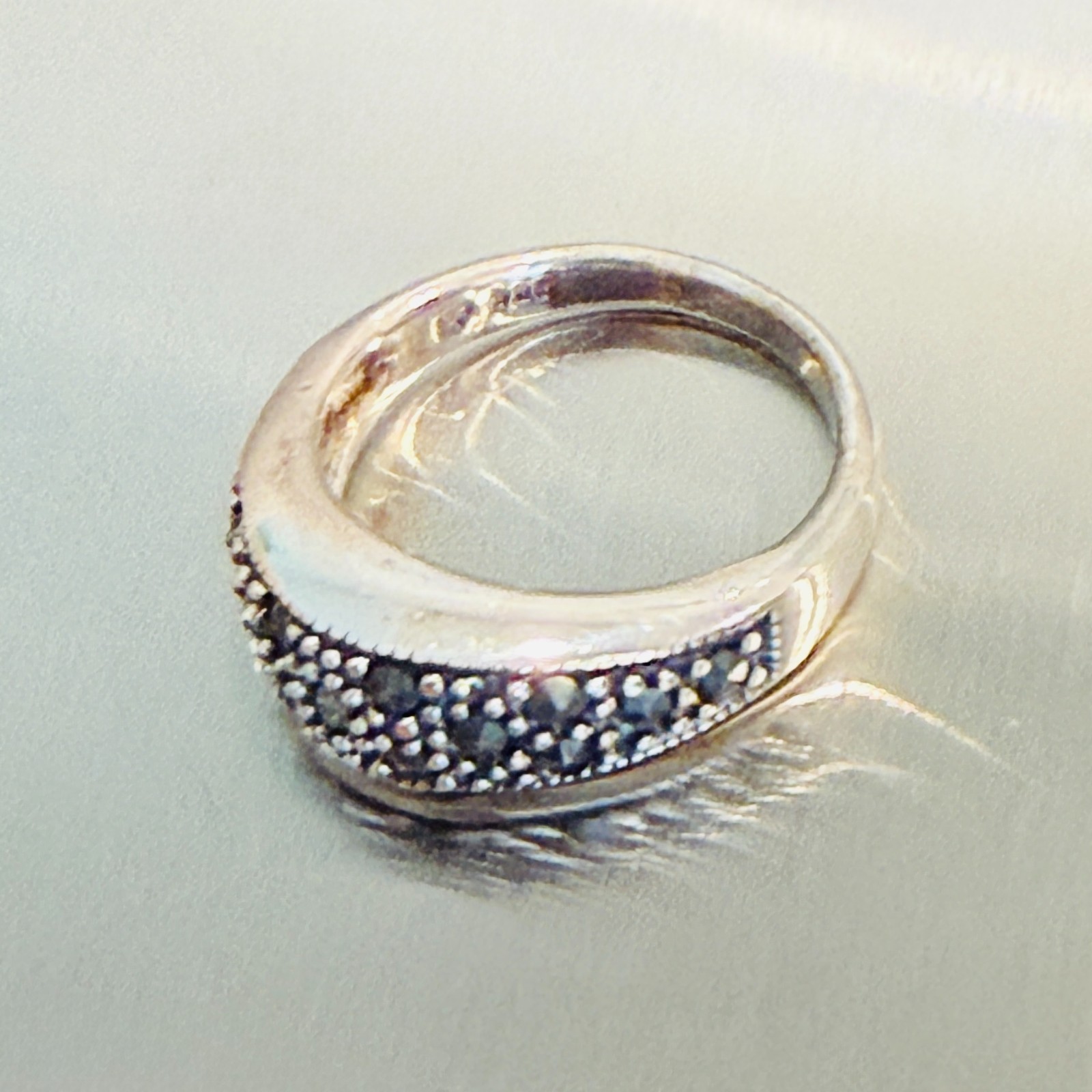 как выглядит Vintage Solid 925 Sterling Silver Marcasite Domed Band Ring 3.5 Grams Sz 6 фото