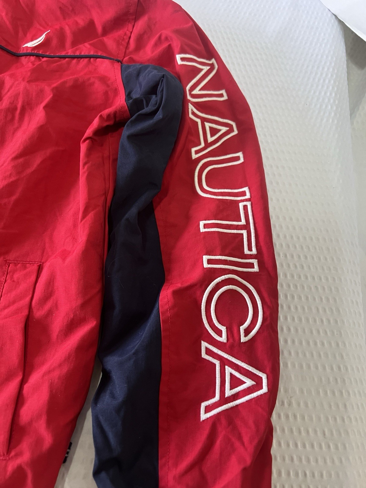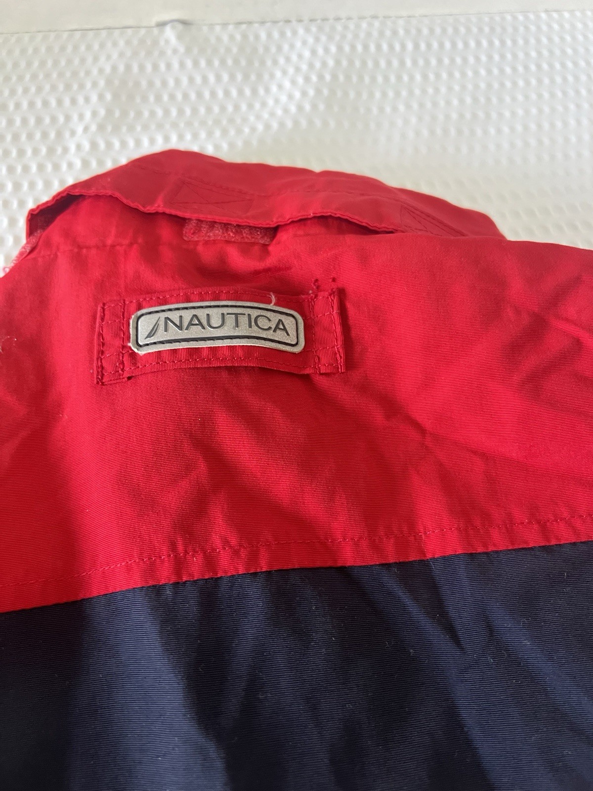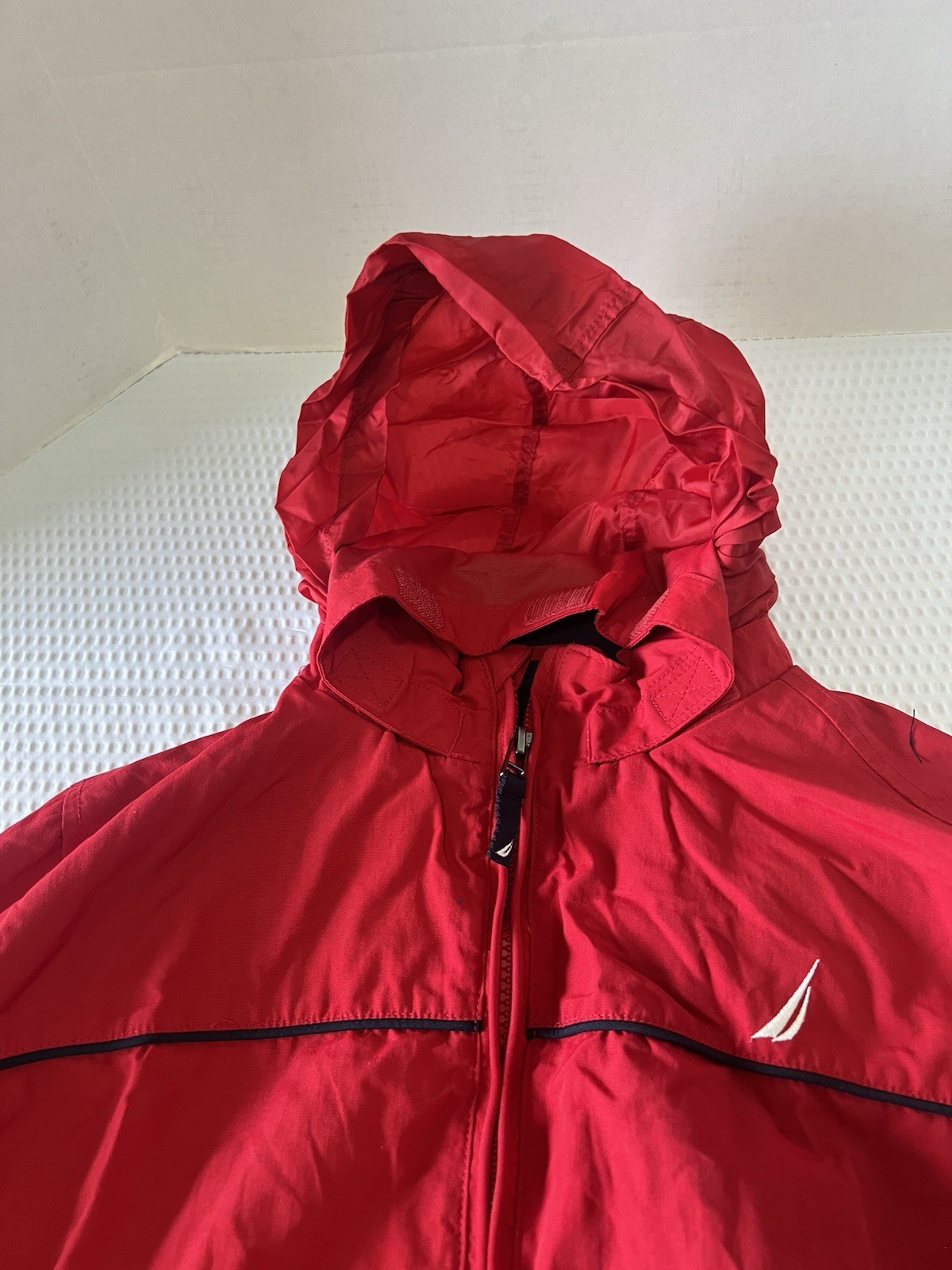 Kids Nautica Red Navy Windbreaker Jacket With Hidden Hood Sz 10/12 Medium