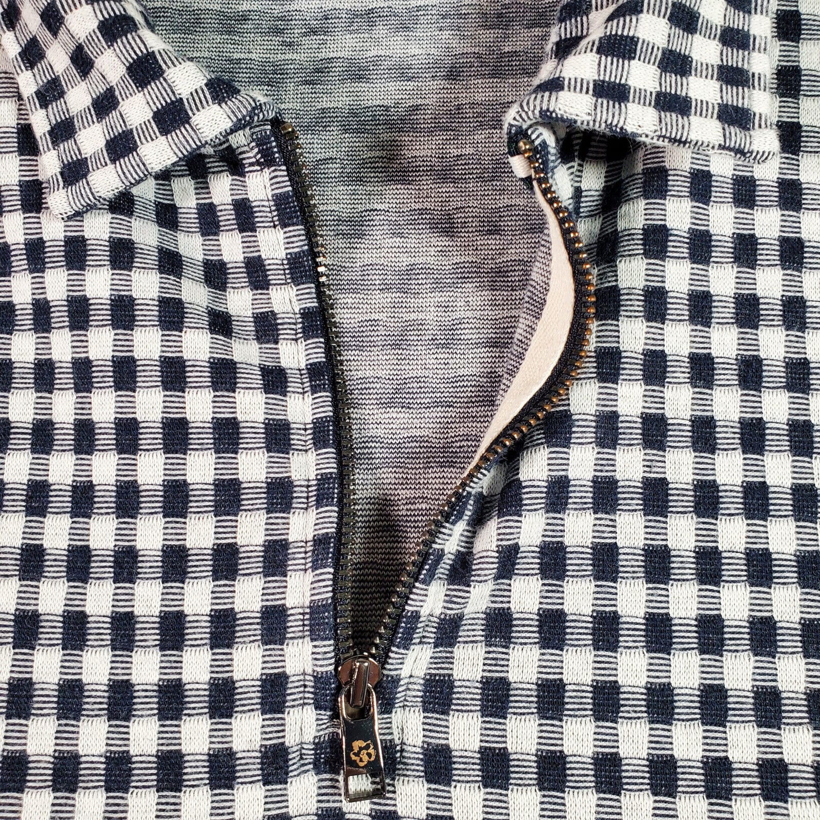 Ted Baker Polo Shirt Mens XL/5 Blue White Gingham 1/4 Zip Short Sleeve Preppy